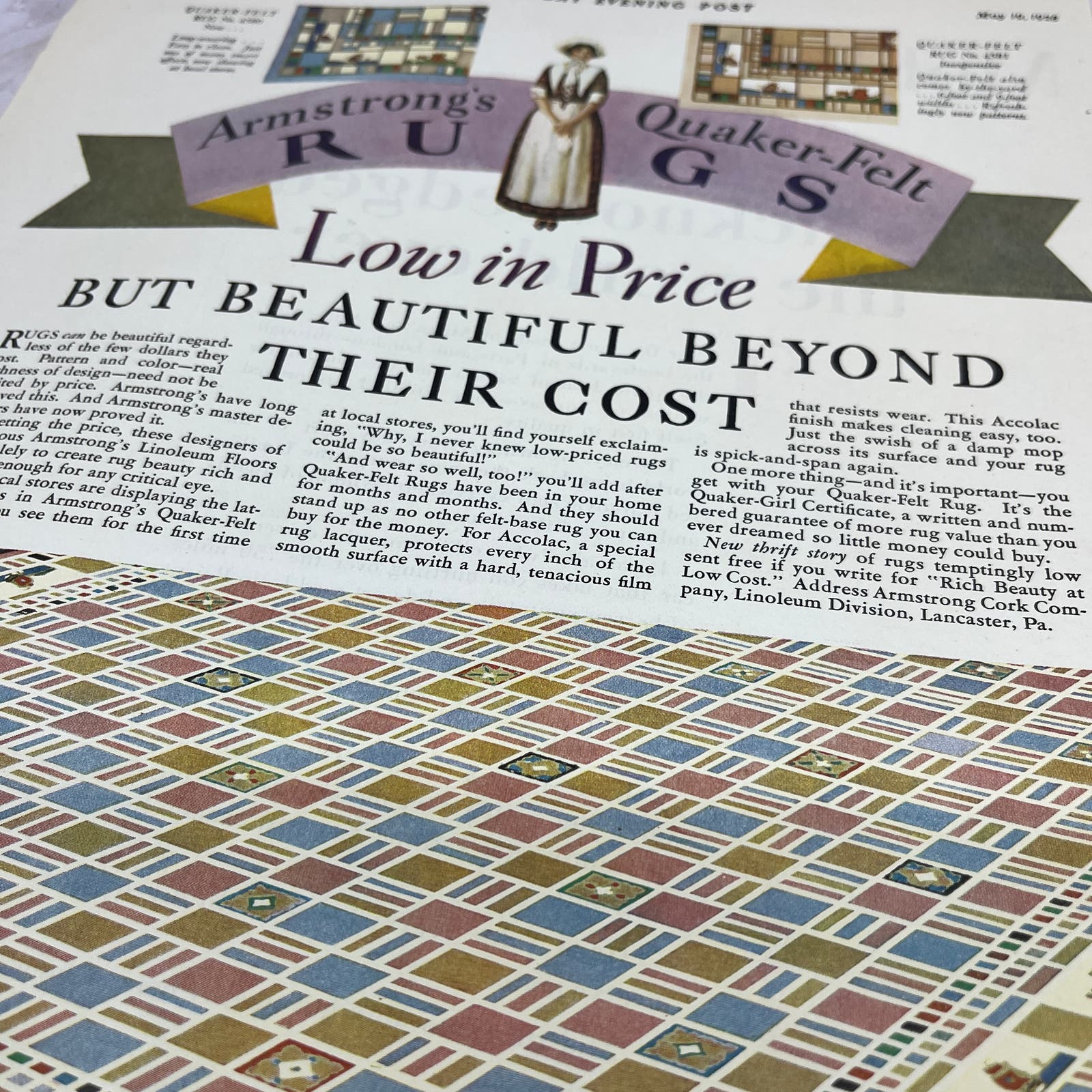 Armstrong's Quaker-Felt Rugs 1928 Original Magazine Advertisement FL6-8