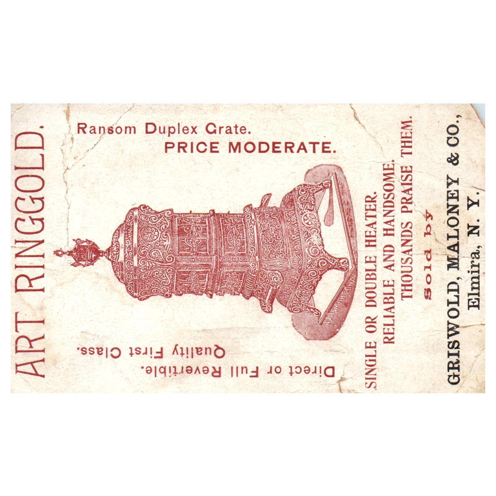 Art Ringold Heater Griswold, Maloney & Co Elmira NY - 1880s Trade Card TJ8-3