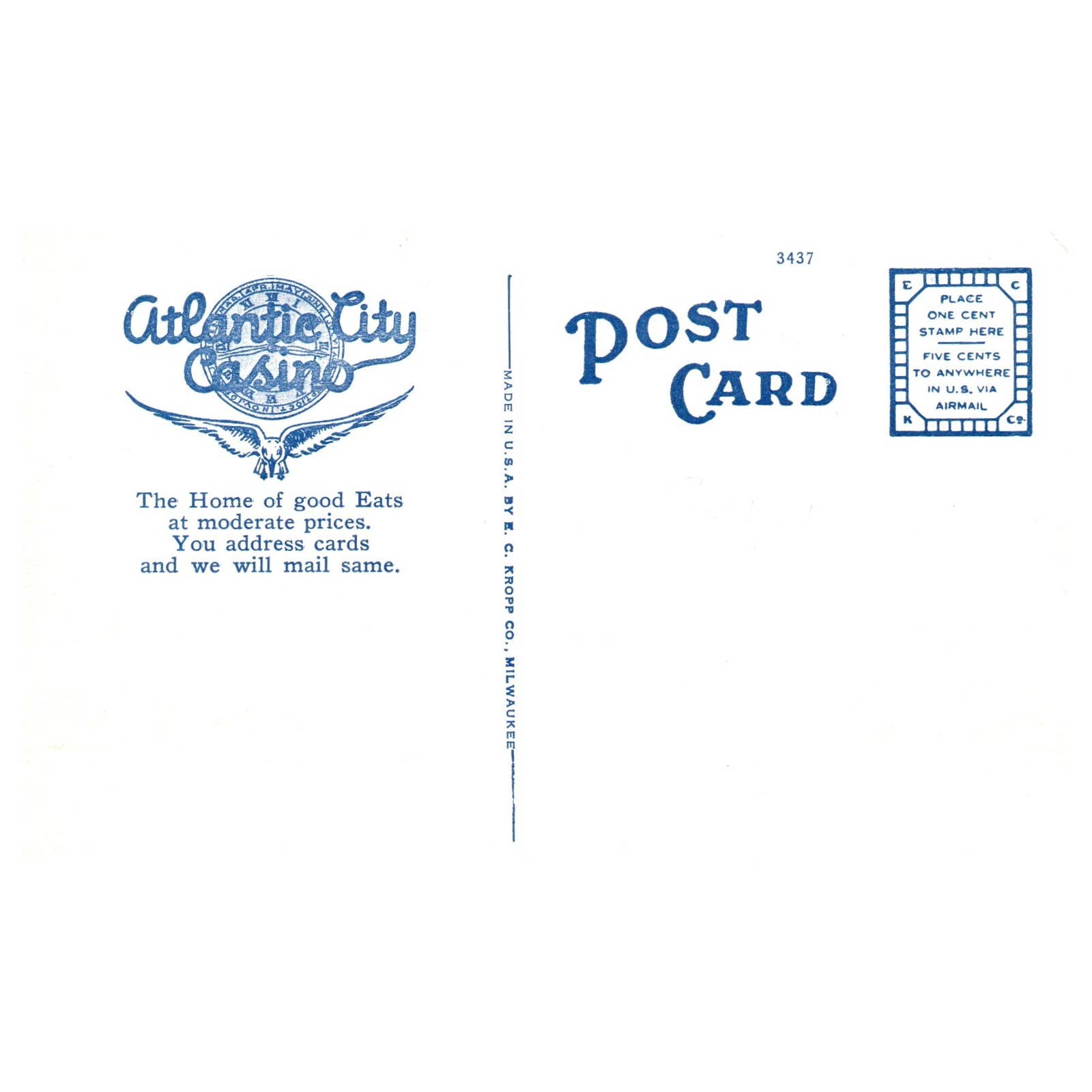 Atlantic City Casino, Atlantic City New Jersey - Postcard TJ8-2