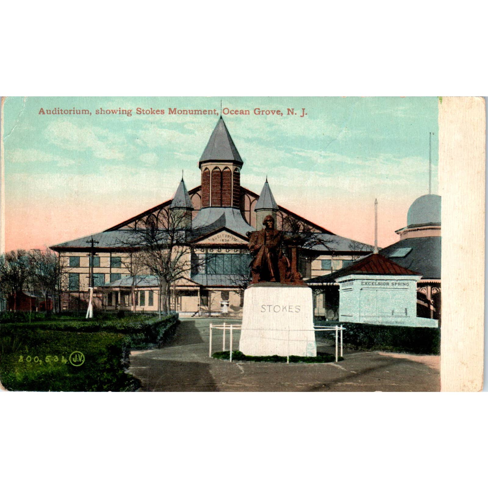Auditorium Stokes Monument Ocean Grove NJ c1910 Original Postcard TK1-P1