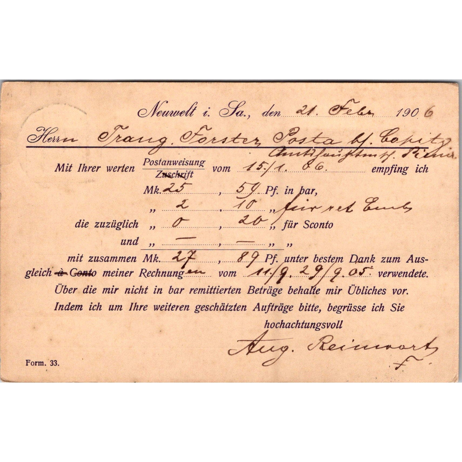 Aug. Reinwart Neuwelt SA Copitz 1906 German Reich Postcard TE2-GRQ