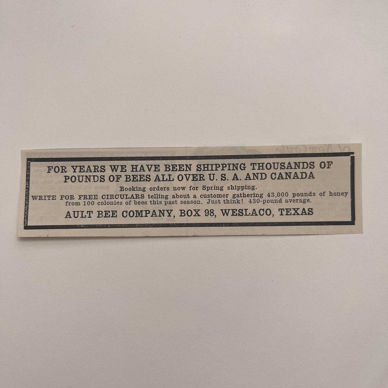 Ault Bee Company Weslaco Texas 1926 Ad AG3-M8