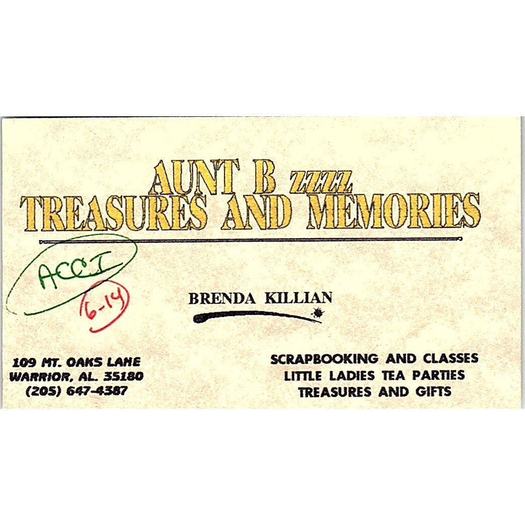 Aunt B ZZZZ Treasures & Memories Brenda Killian Warrior AL Vintage Business Card SC9-B9