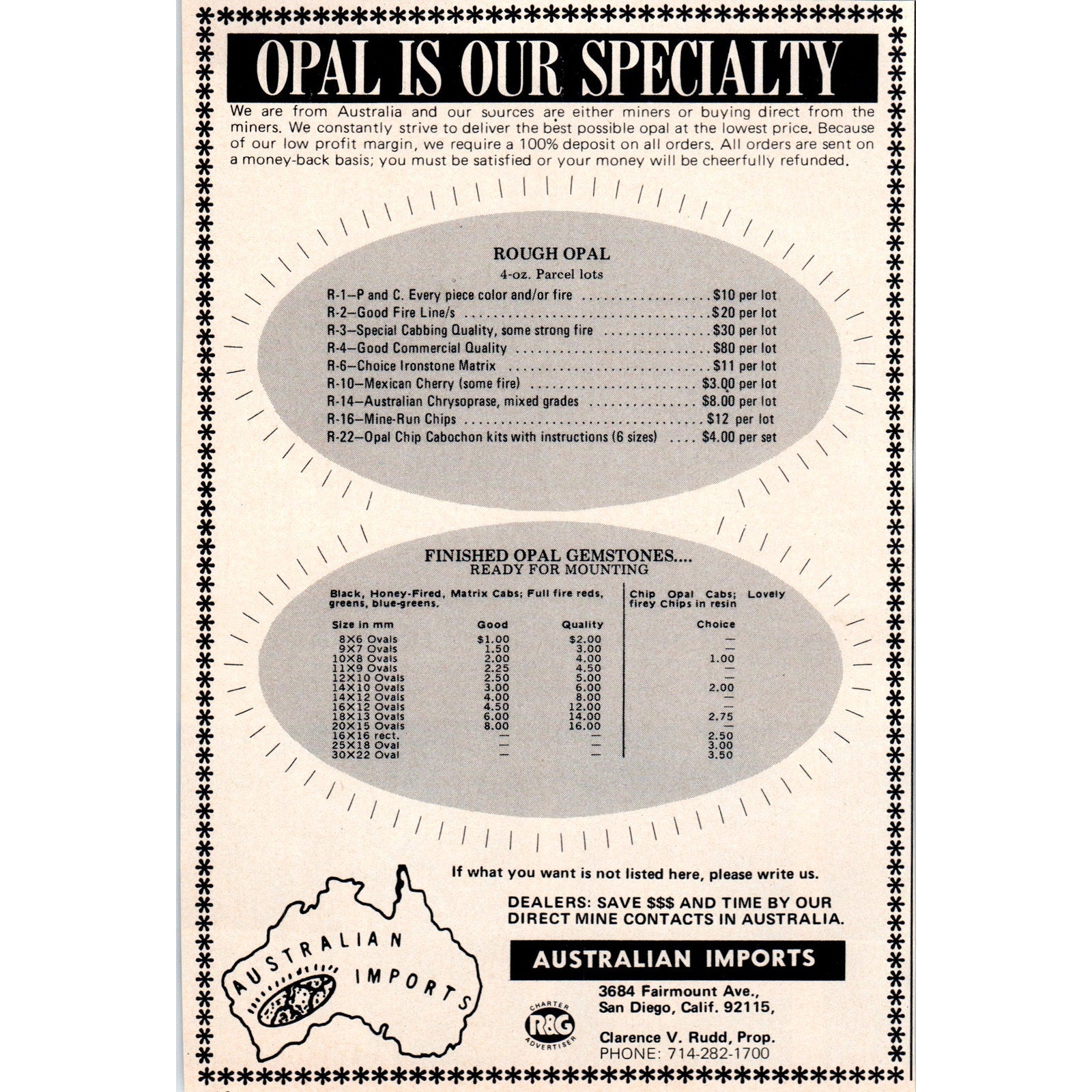 Australian Imports San Diego CA Opals Clarence V. Rudd 1971 Magazine Ad AD8-R9