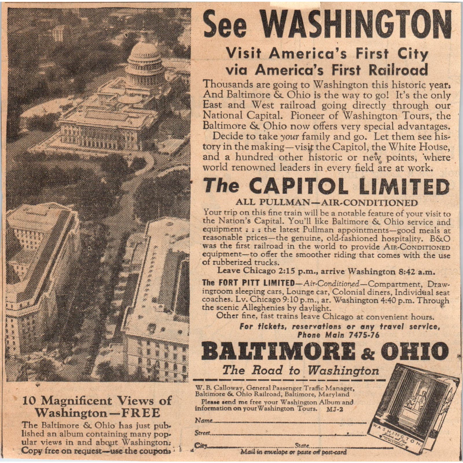 B&O Railroad See Washington 6" 1935 Minneapolis Journal Advertisement AE7-N9