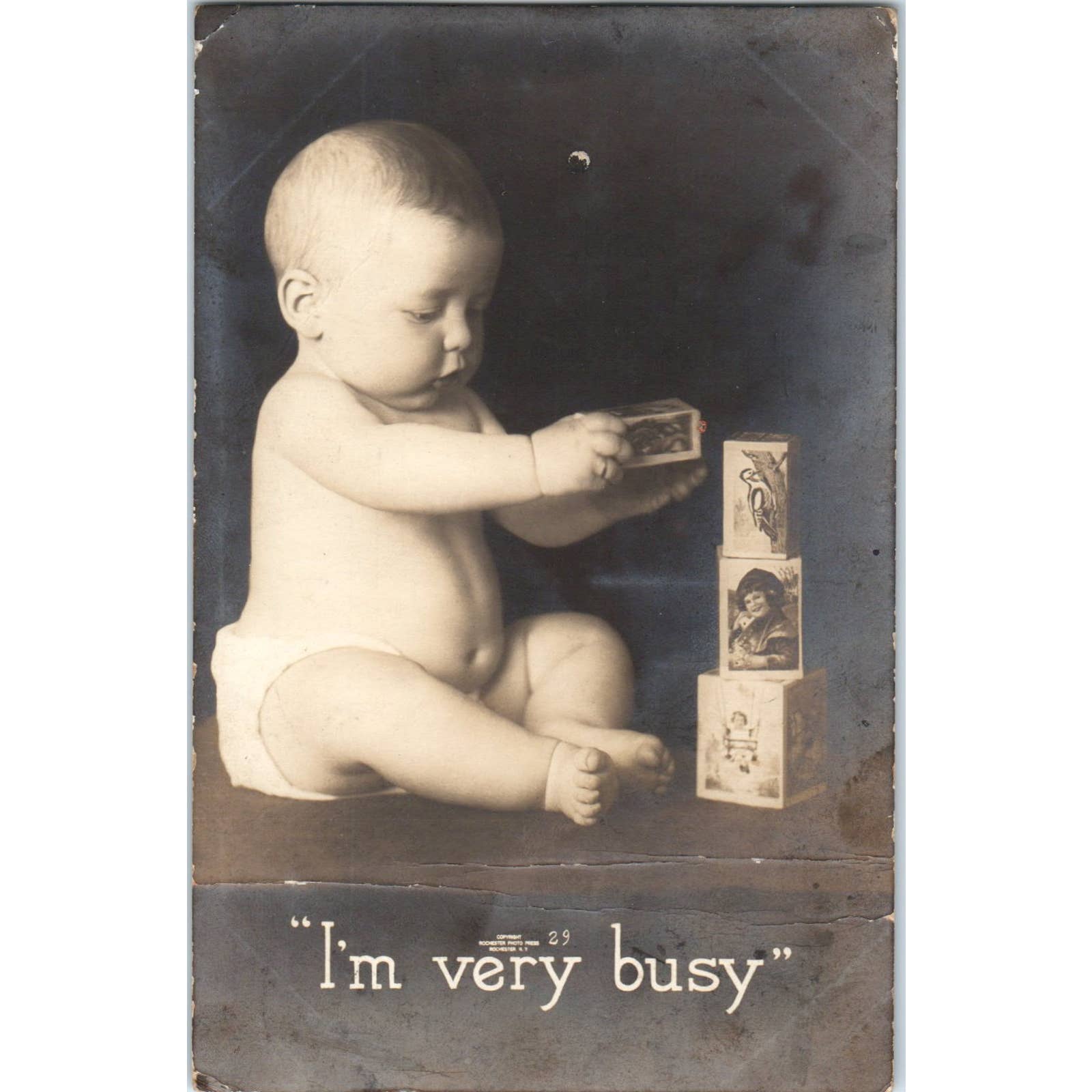 Baby Playing With Blocks 1914 Original Postcard TK1-22