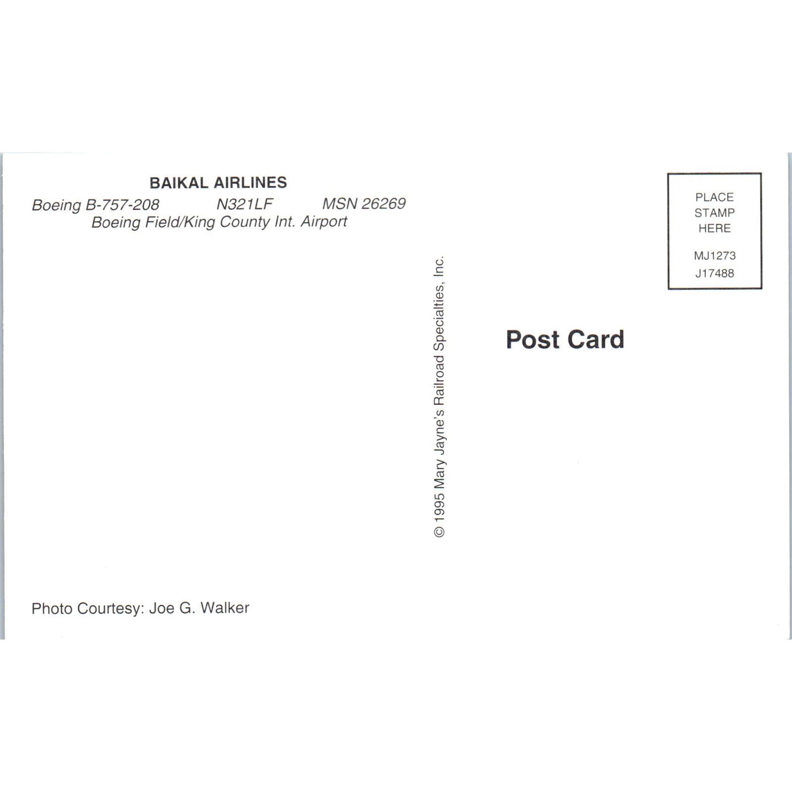 BAIKAL Airlines Boeing B-757-208 Vintage Postcard PC2