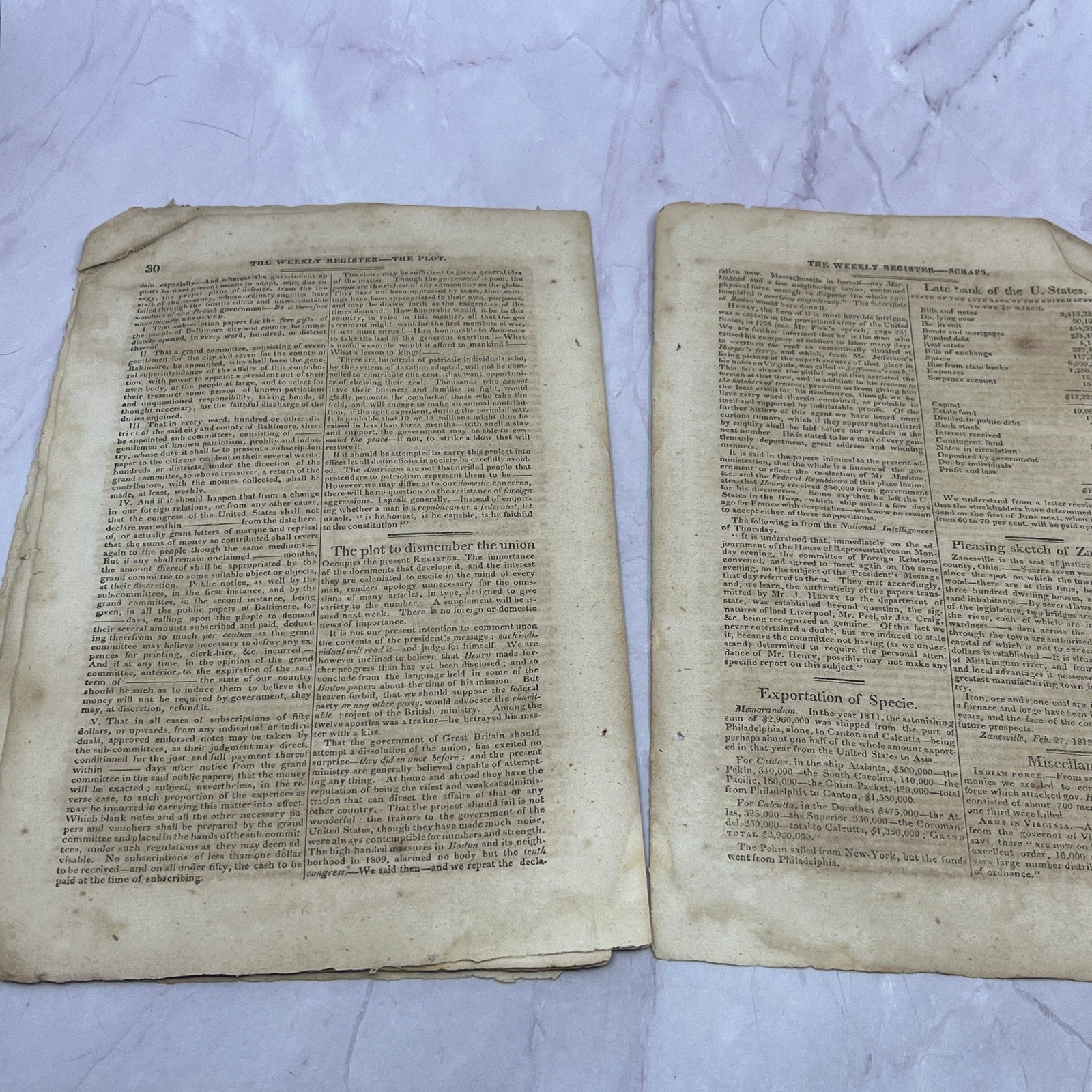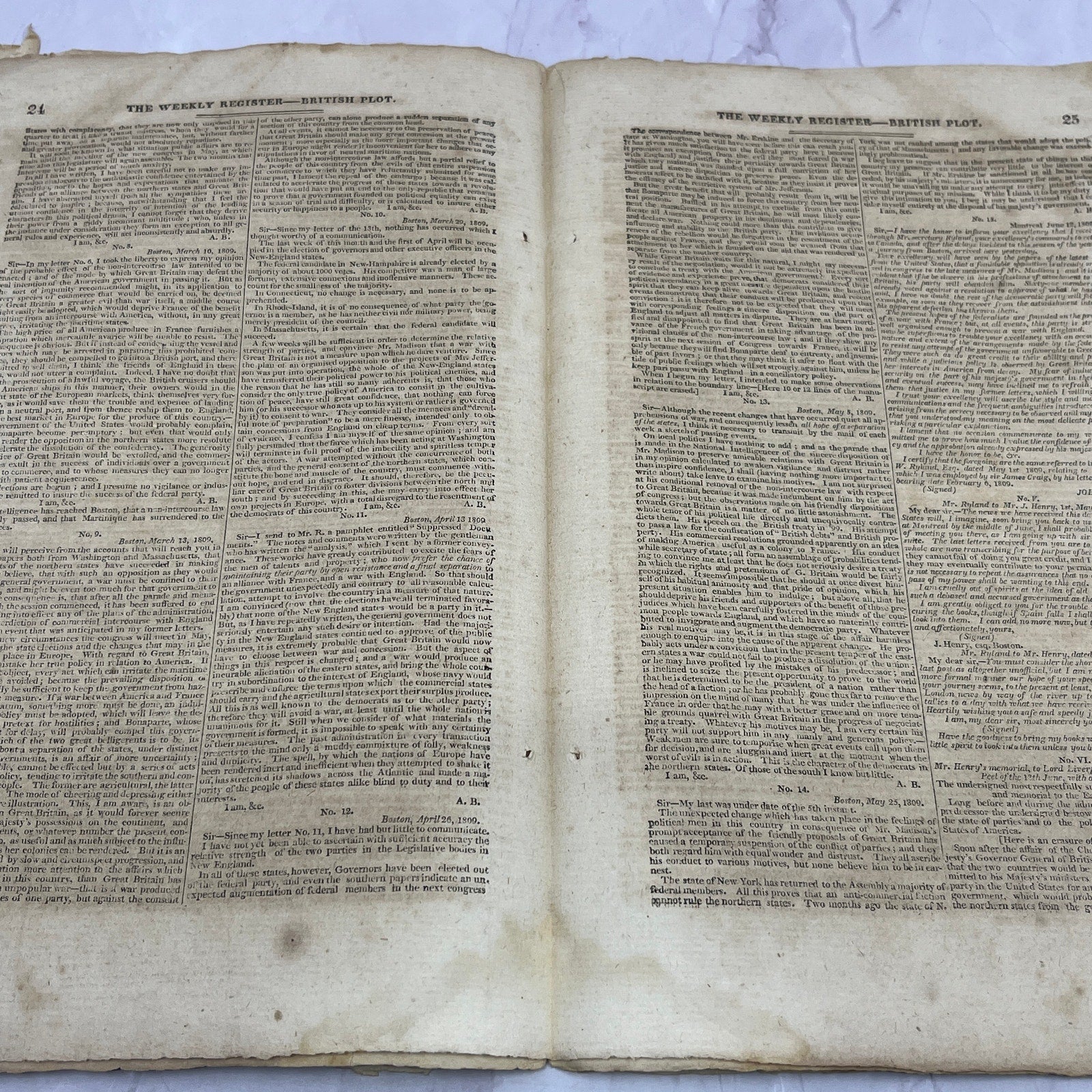 Baltimore Weekly Register Mar 14 1812 - War of 1812 British Navy British Plot AF9-10