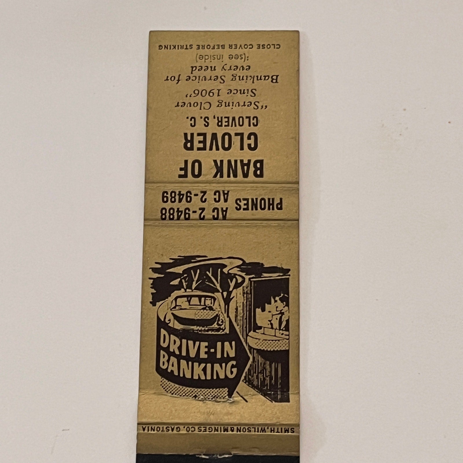 Bank of Clover South Carolina Vintage Matchbook Cover TB6-MB2-2