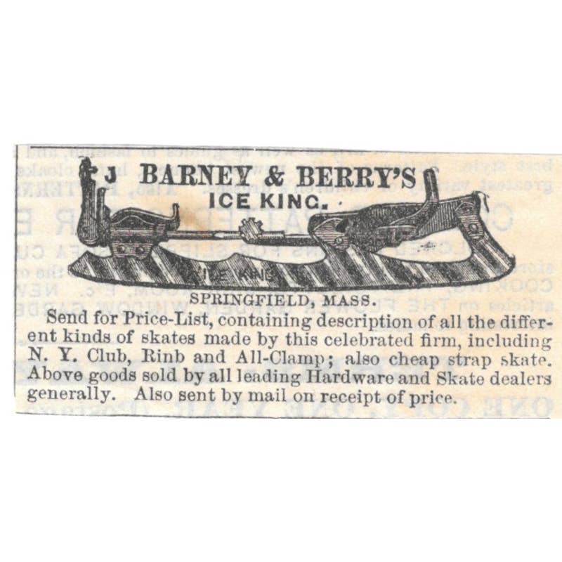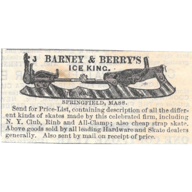 Barney & Berry's Ice King Springfield Mass - Ad 1878 Original TJ7-L2-4