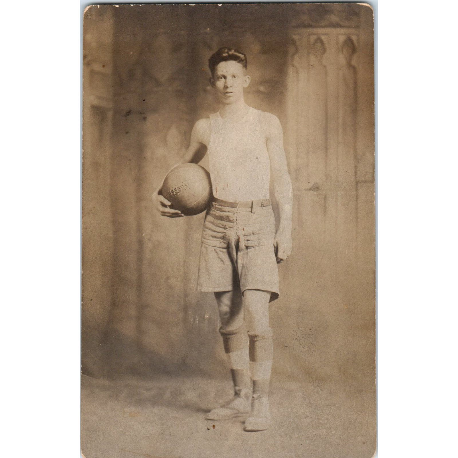 Basketball Player Boy With Worn Out Basketball RPPC Postcard Original AD8-P7