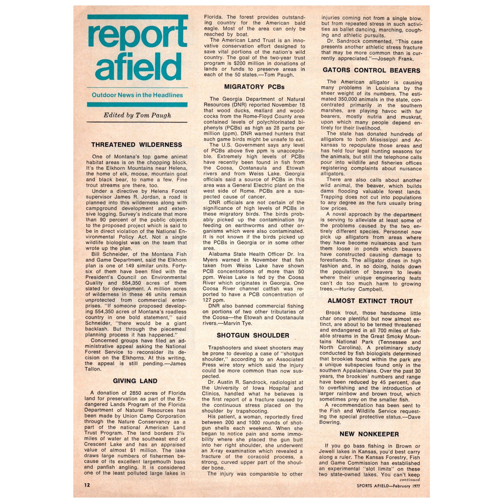 Has a ripple. Measures approx 8x11. Original piece from Feb 1977 Sports Afield Magazine. There be some light staining, tears, and/or other signs of wear and tear. See pics for condition.