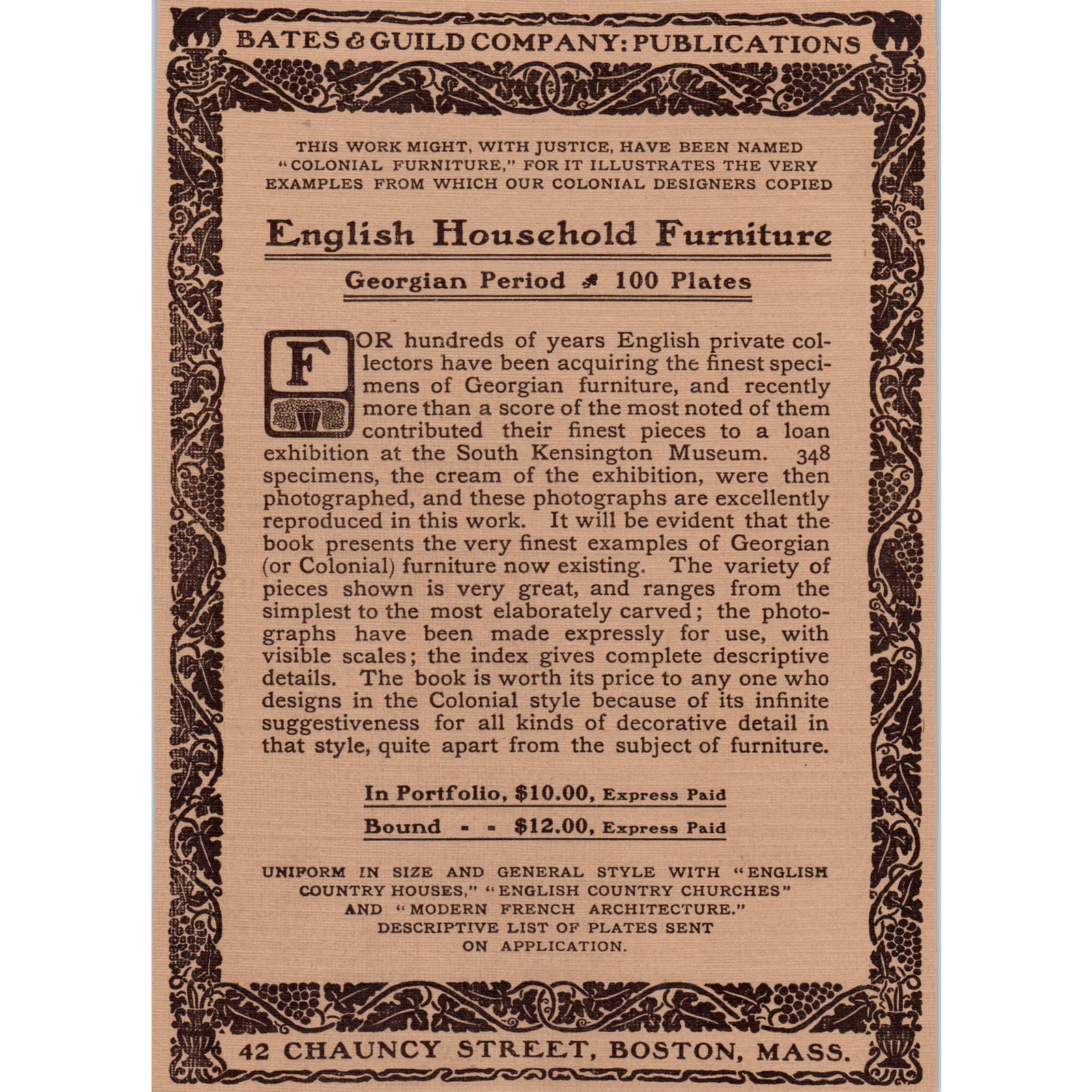 Bates & Guild Co English Household Furniture Boston c1905 Victorian Ad D12