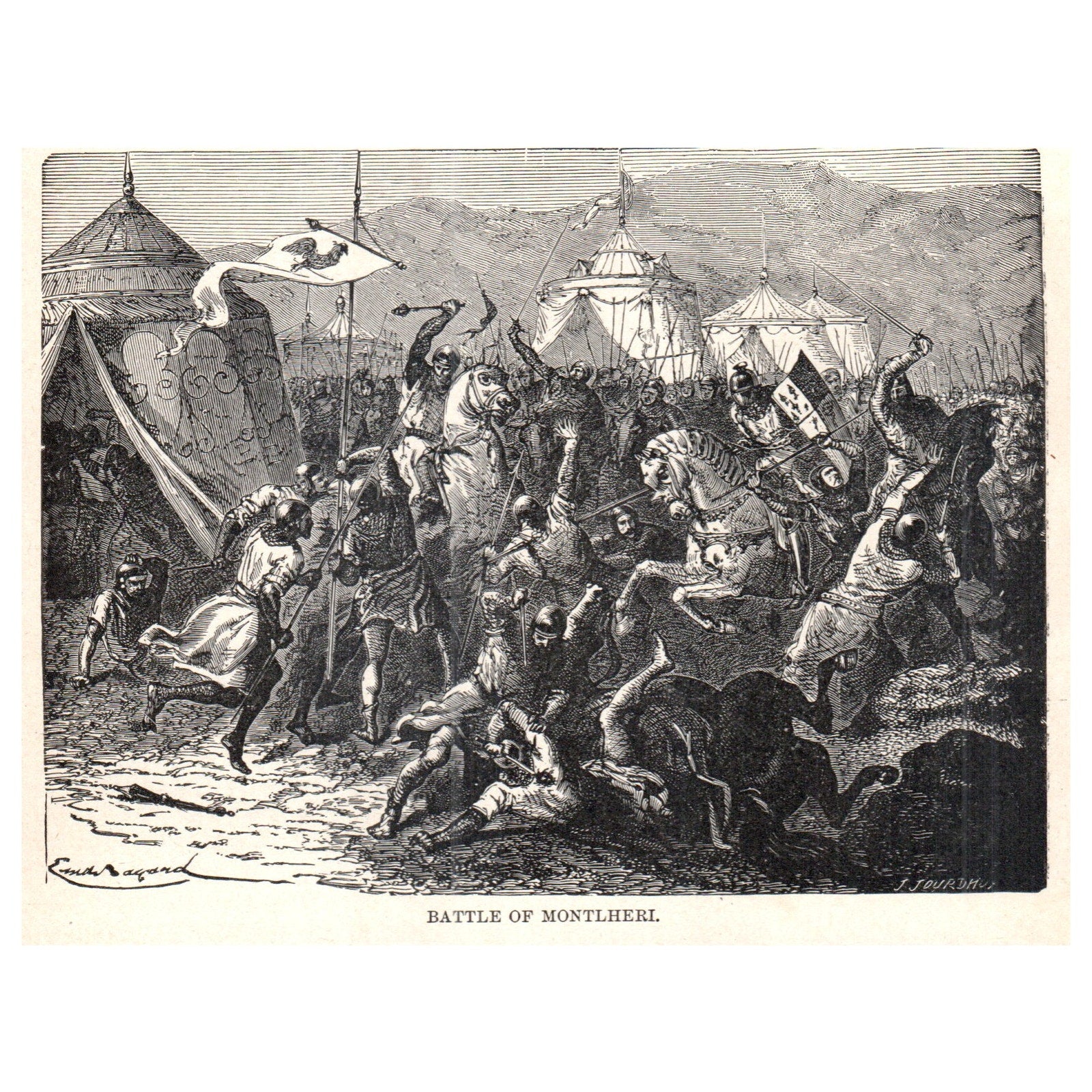 Battle of Montlhery 1911 Engraving Print AF5-7