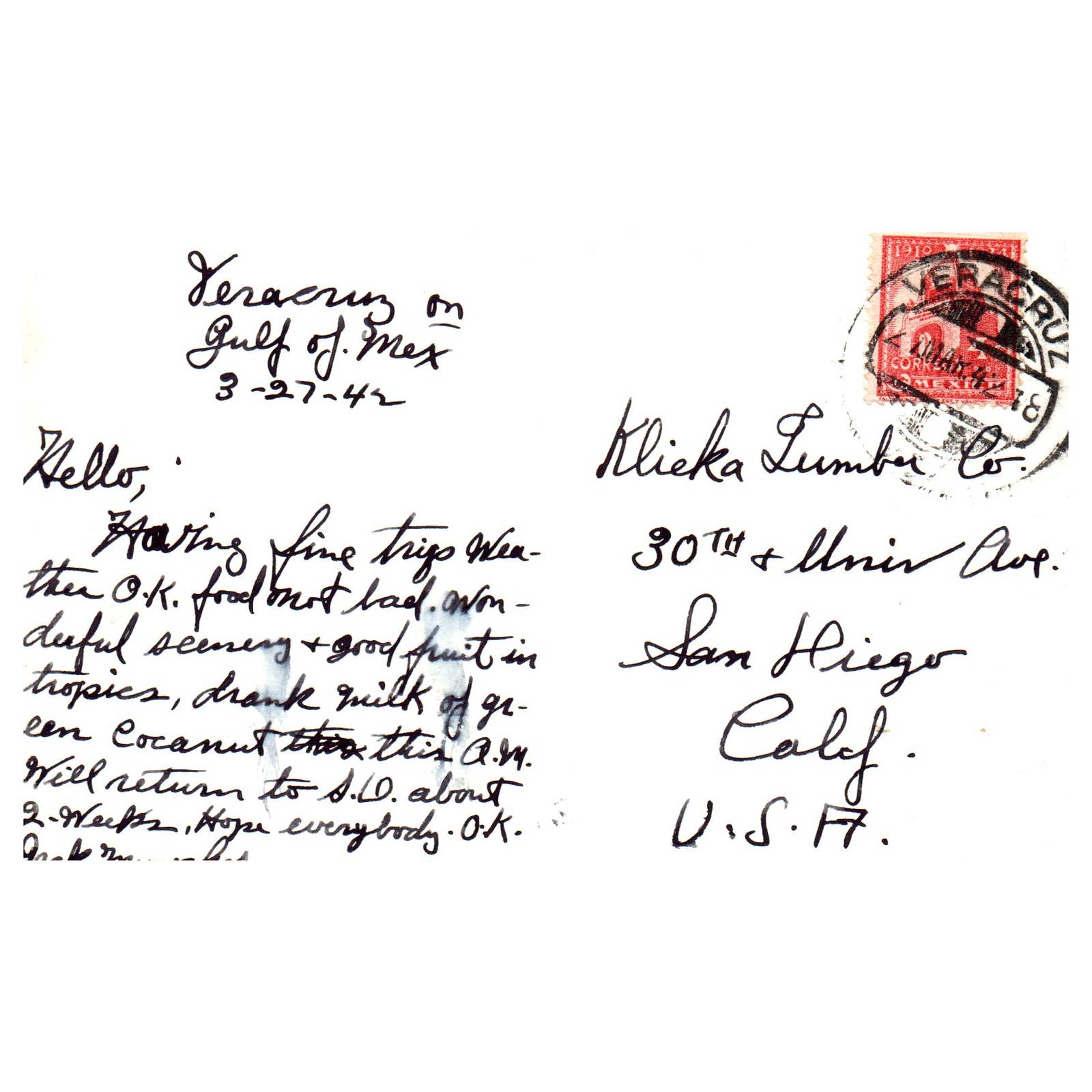 Battleship at Bahia De Veracruz Mexico - Original Postcard TJ8-5