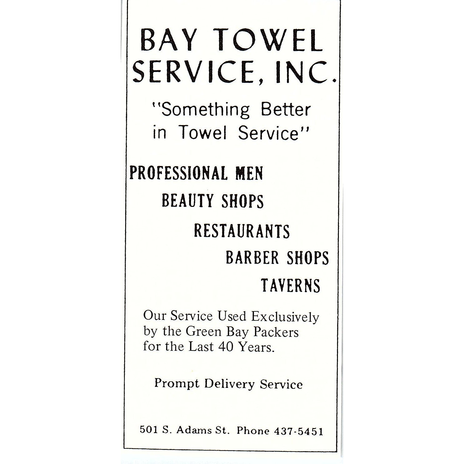 Bay Towel Service Inc 501 S. Adams St Green Bay WI 2.5x5" 1981 Ad AF6-17
