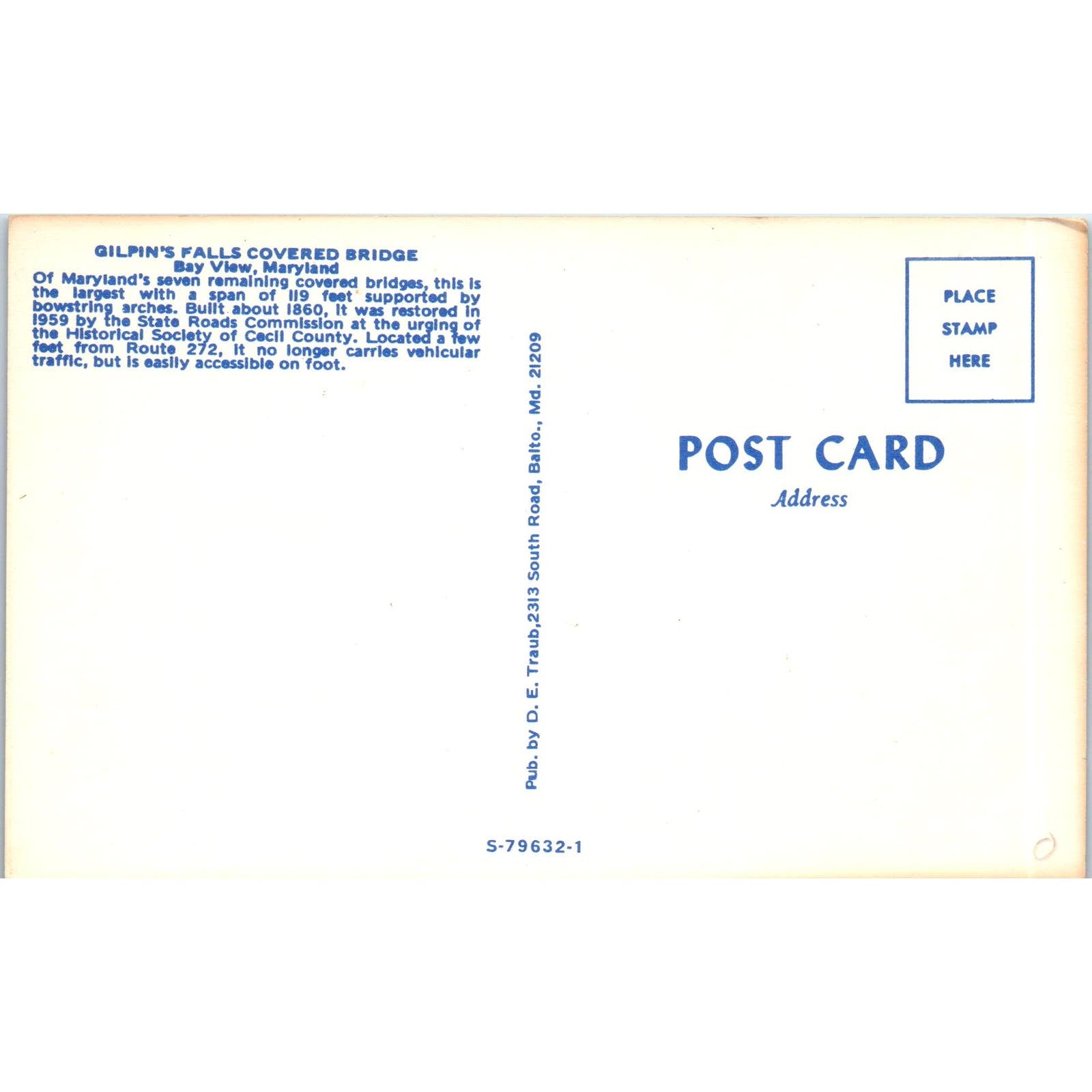 Bay View MD Gilpin's Falls Vintage Covered Bridge Postcard PC12