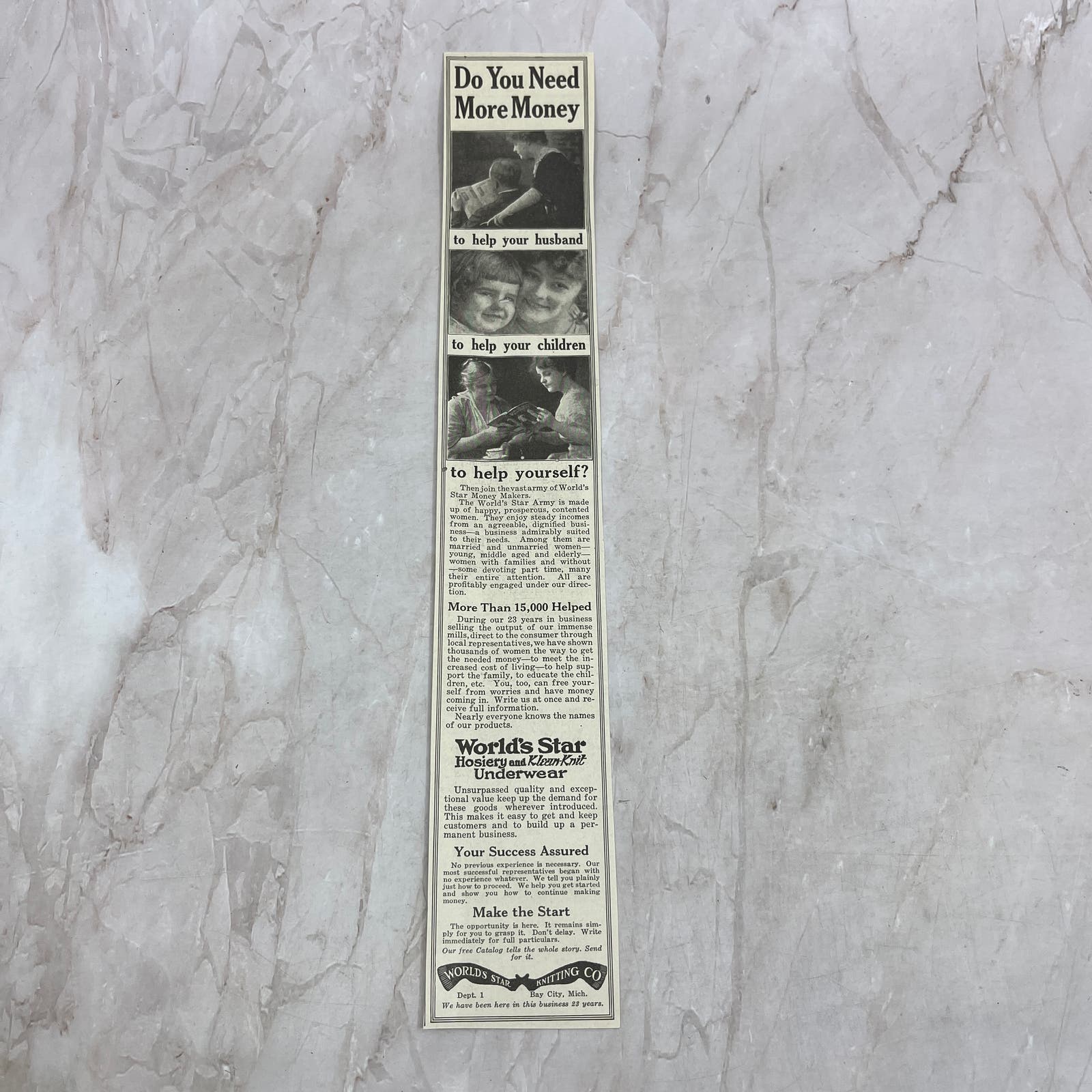 Measures approx 2.5x12. Original piece pulled from the March 1918 Woman's Home Companion Magazine. As this piece is over 100 years old, there are some staining and signs of wear and tear. See pics for condition.