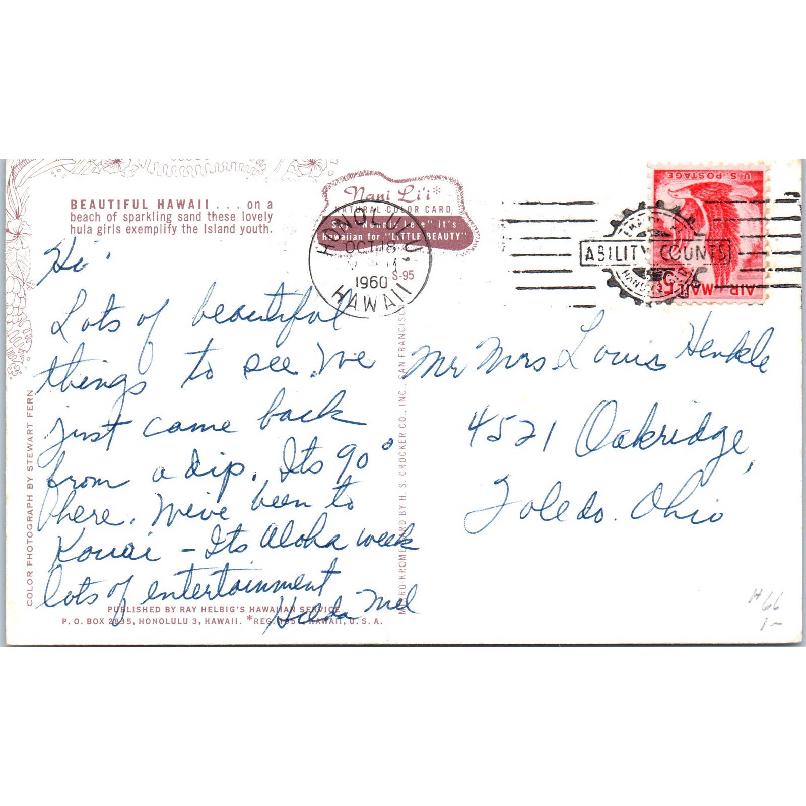 Beautiful Hawaii Hula Girls on Beach 1960 Original Postcard TK1-20