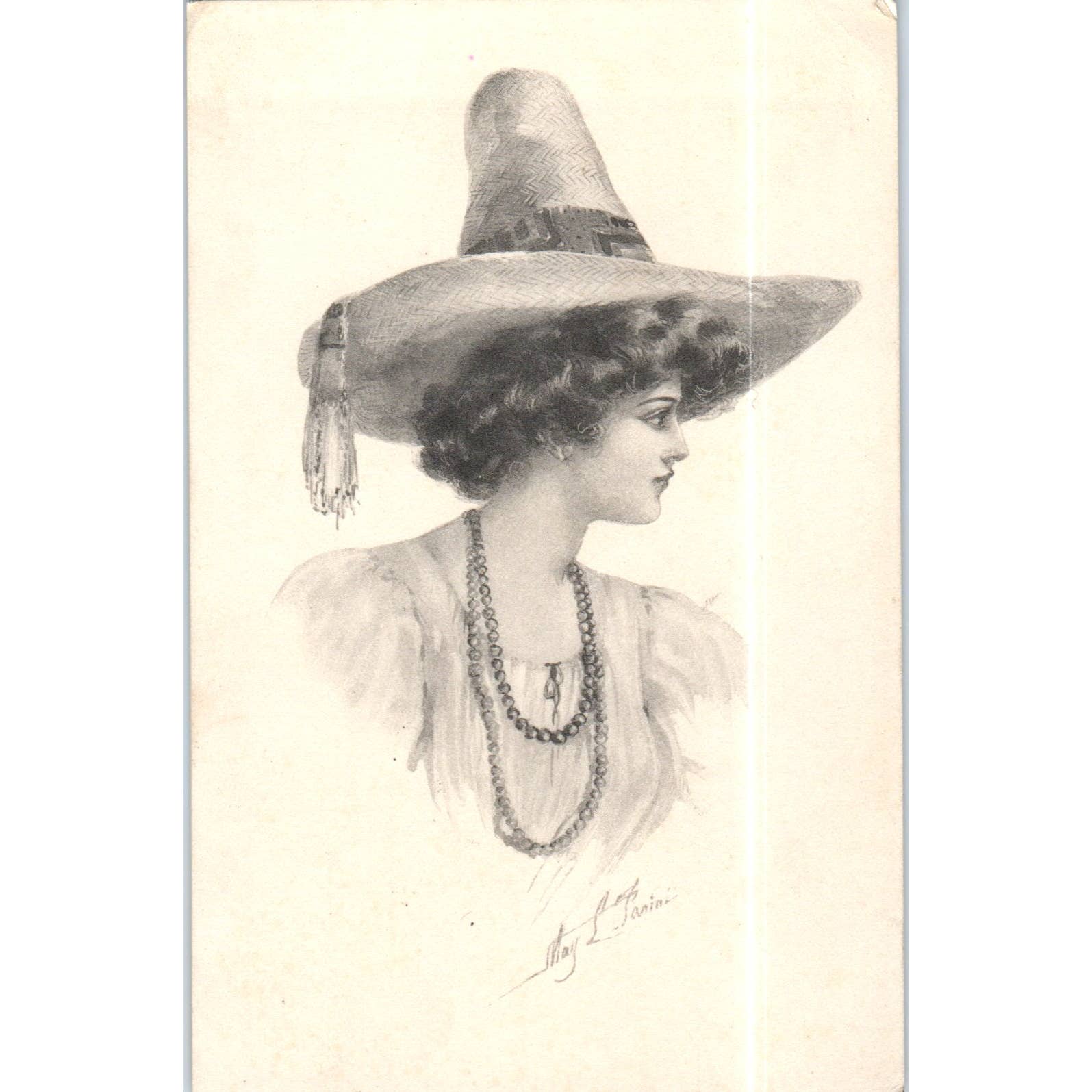 Beautiful Lady Wearing Large Straw Hat Sketch 1911 Original Postcard TK1-P15