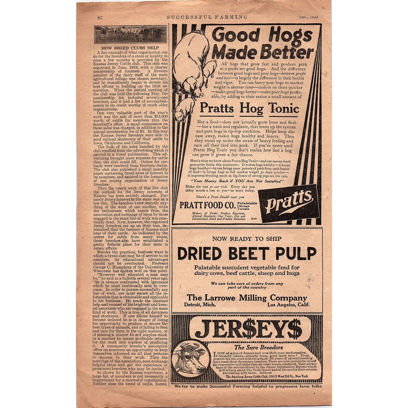 Measures approximately 7.5x11". Original piece taken from 1920 Successful Farming Magazine. Is a little brittle, and has wear and tear you would expect from something this age. See pics for condition.
