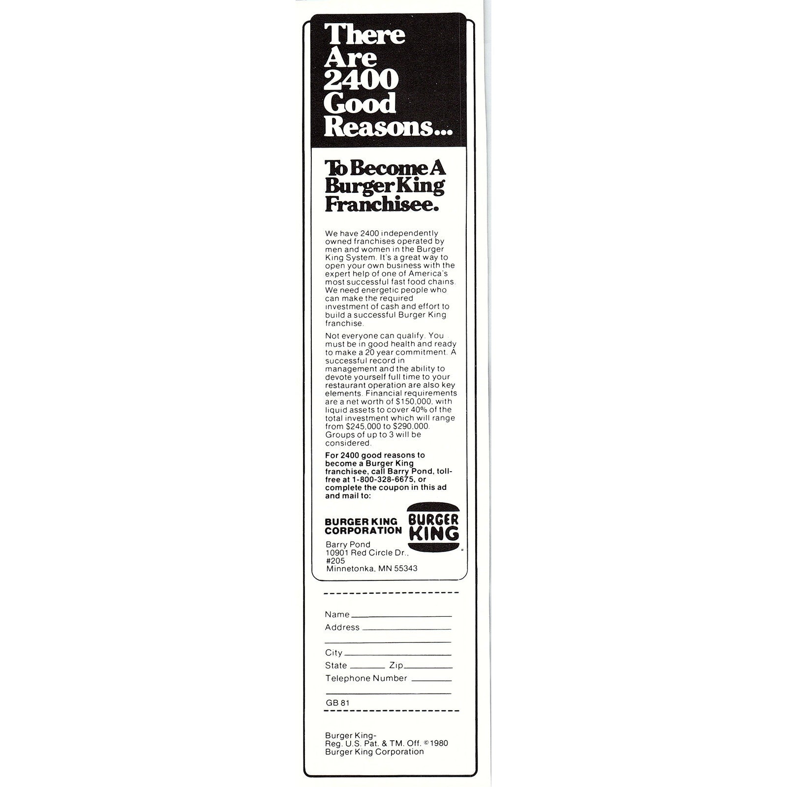 Become a Burger King Franchisee Barry Pond Minnetonka MN 2.5x10" 1981 Ad AF6-17