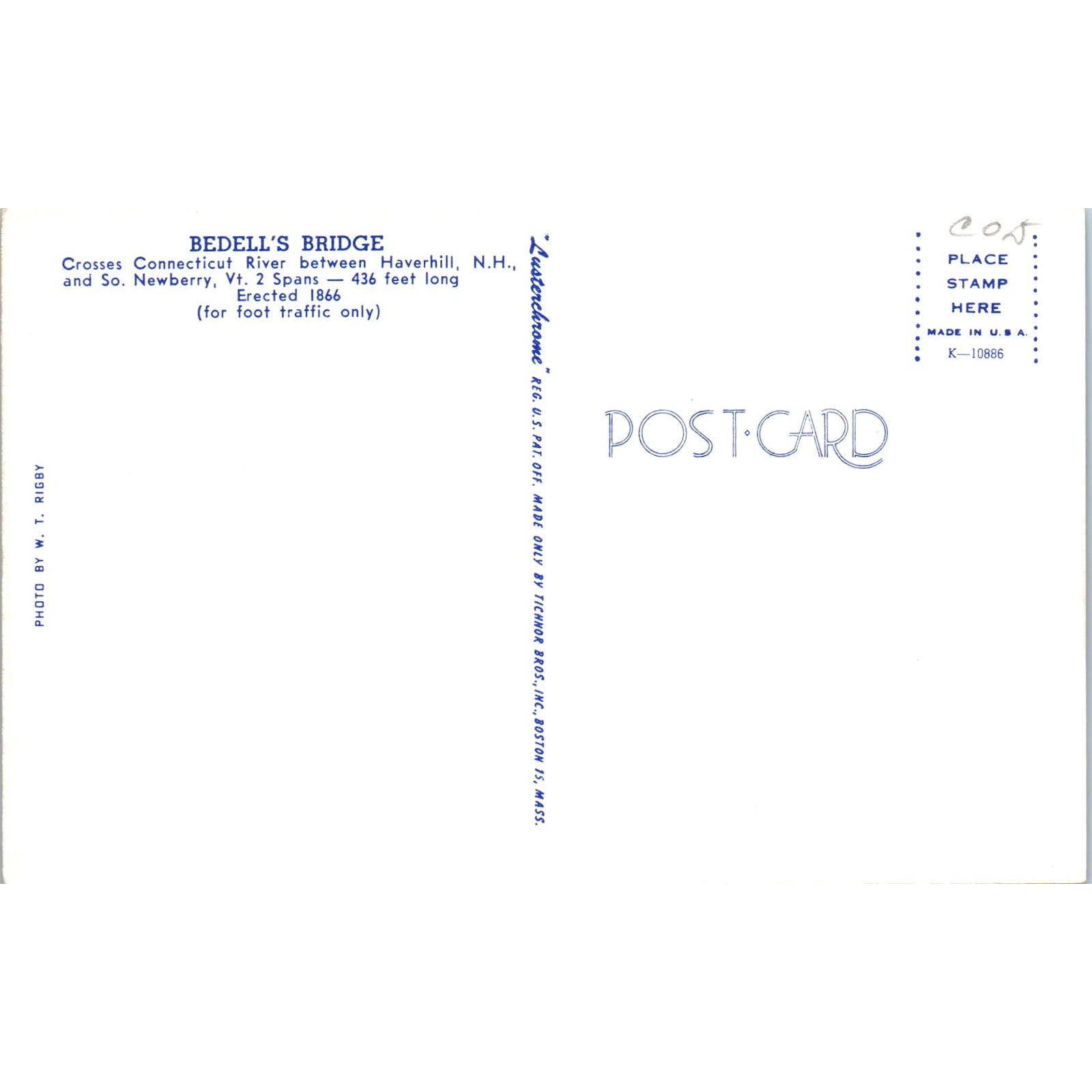Bedell's Bridge Connecticut River Haverhill NH Covered Bridge Postcard PC4