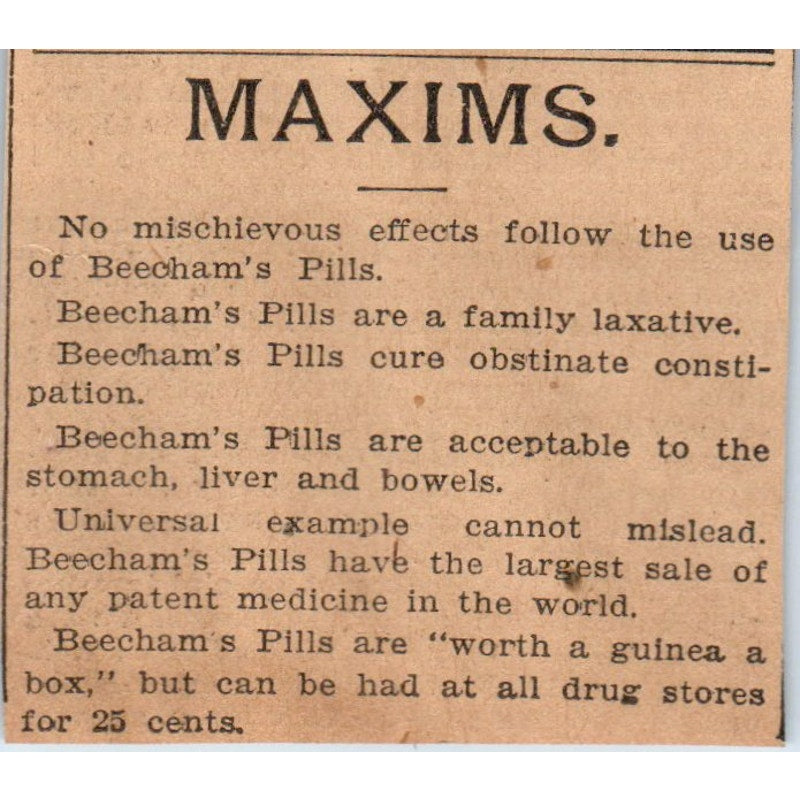 Beechams Pills Maxims Quackery St. Paul 1898 Newspaper Ad AF2-Q4