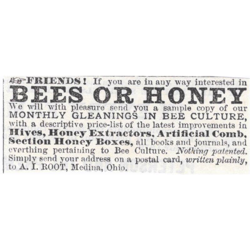 Bees or Honey A.I. Root Medina Ohio - Victorian Ad 1878 Original TJ7-L2-1