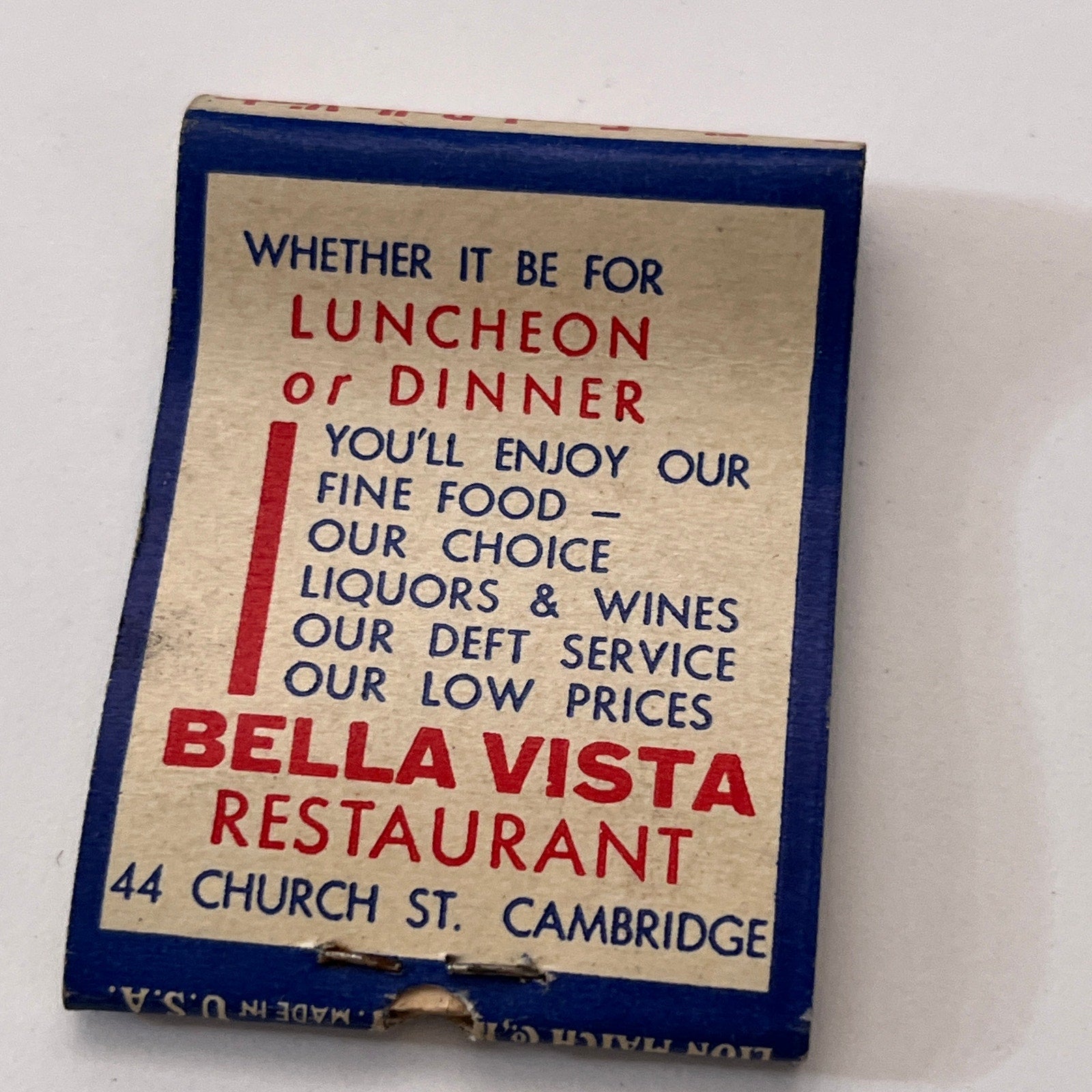 BellaVista Restaurant 44 Church St. Cambridge Vintage Matchbook Cover TB8-MB2-10