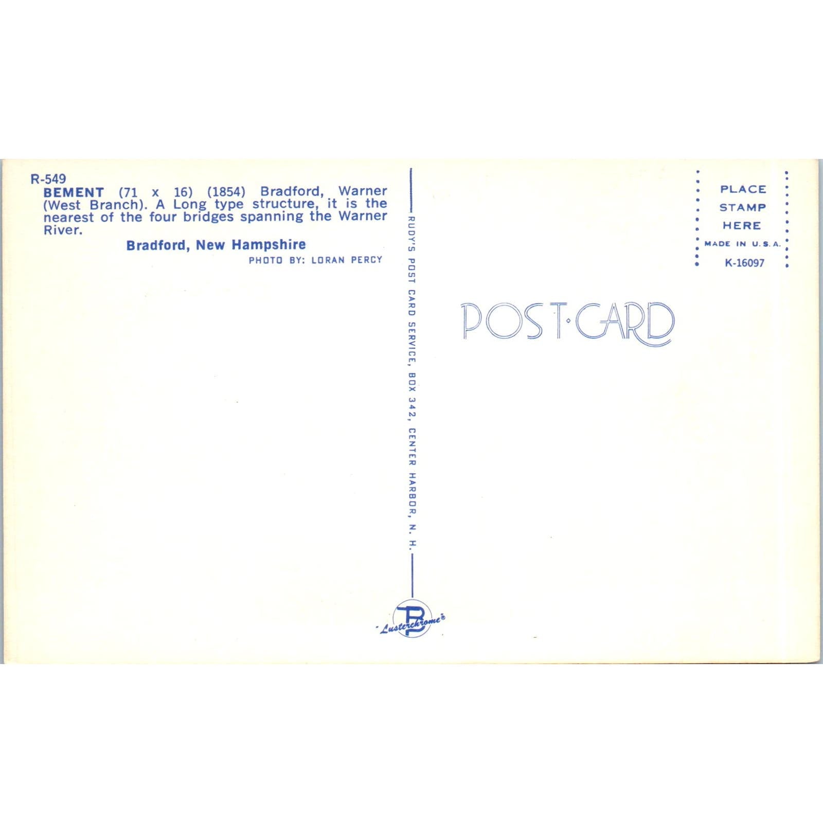 Bement Bradford Warner NH Vintage Covered Bridge Postcard PC13
