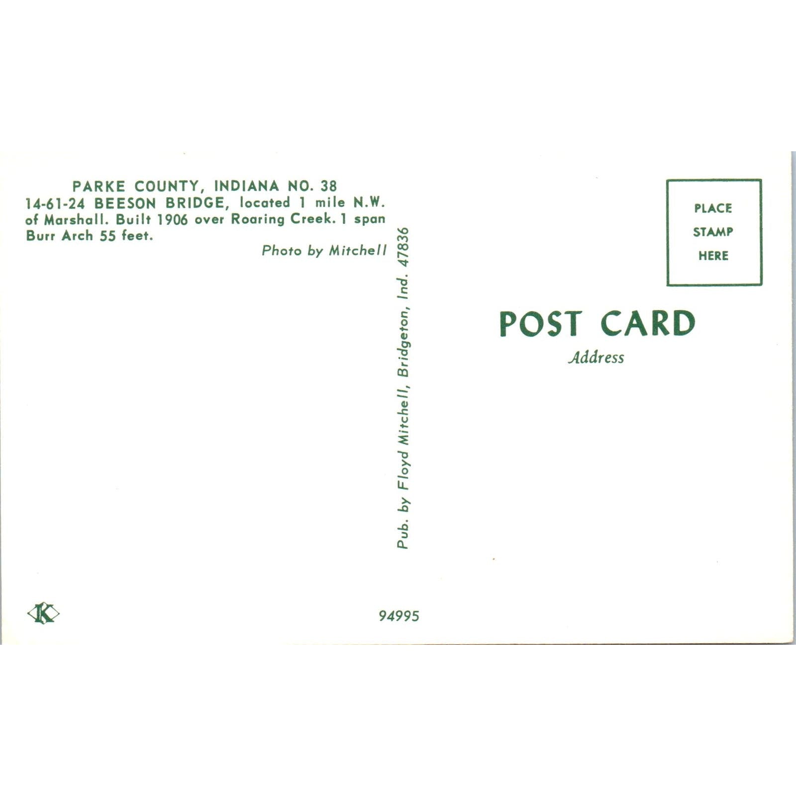 Benson Bridge Parke County Indiana #38 Covered Bridge Postcard PB10