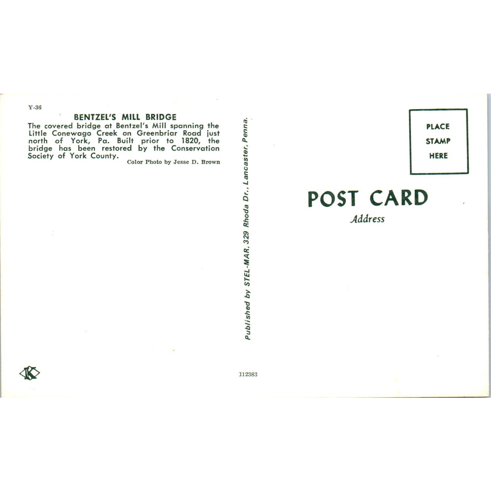 Bentzel's Mill Bridge York PA Vintage Covered Bridge Postcard PD6