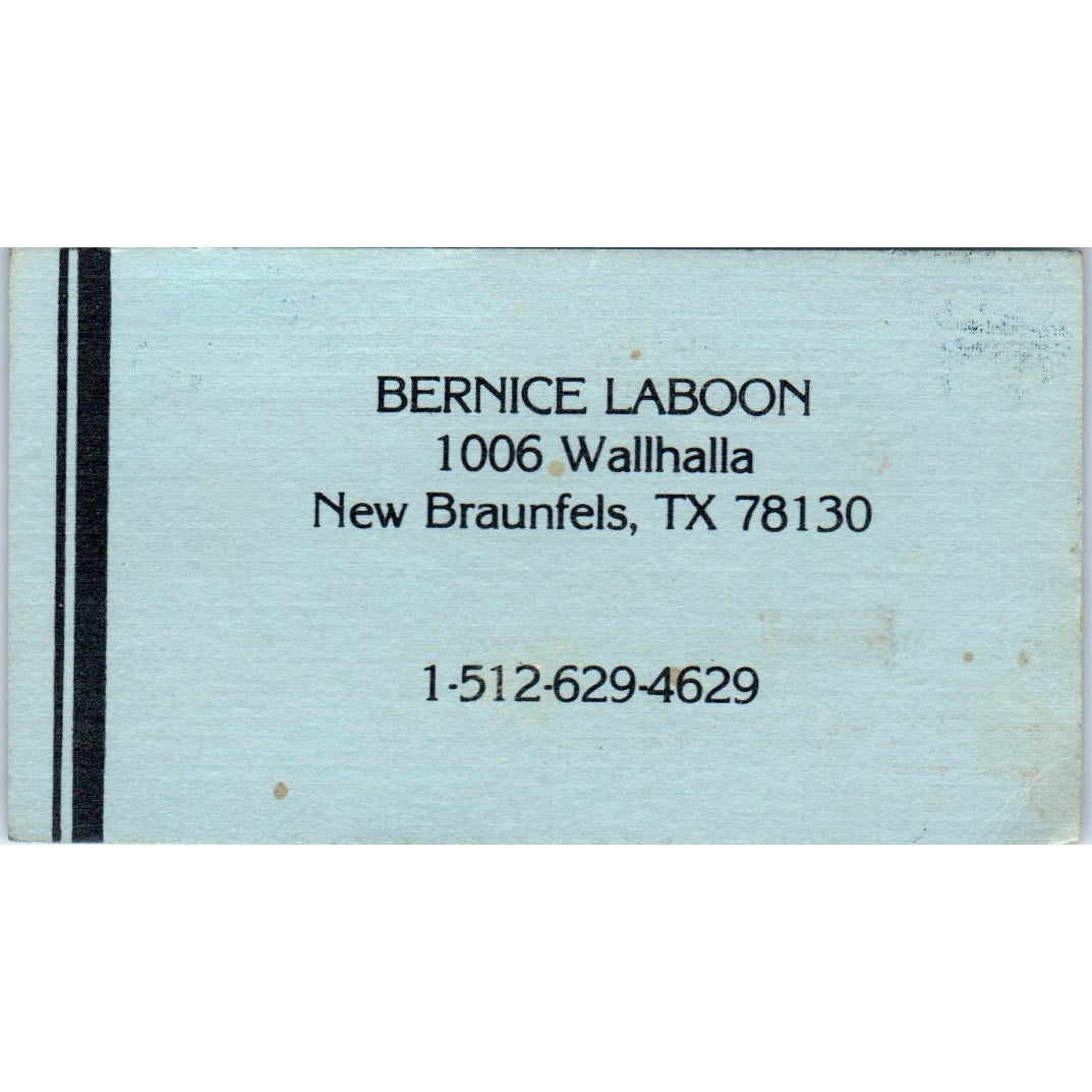 Bernice Laboon New Braunfels TX Vintage Business Card SD8-B16