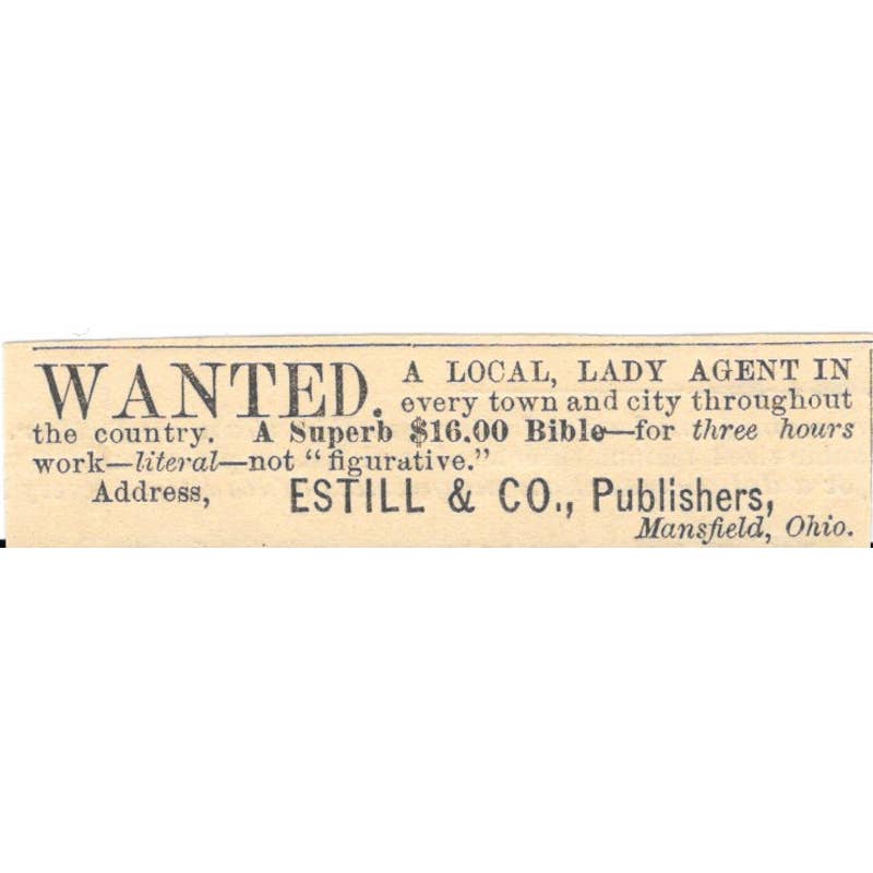 Bible Sales Lady Estill & Co. Publishers Mansfield OH Ad 1878 Original TJ7-L2-4