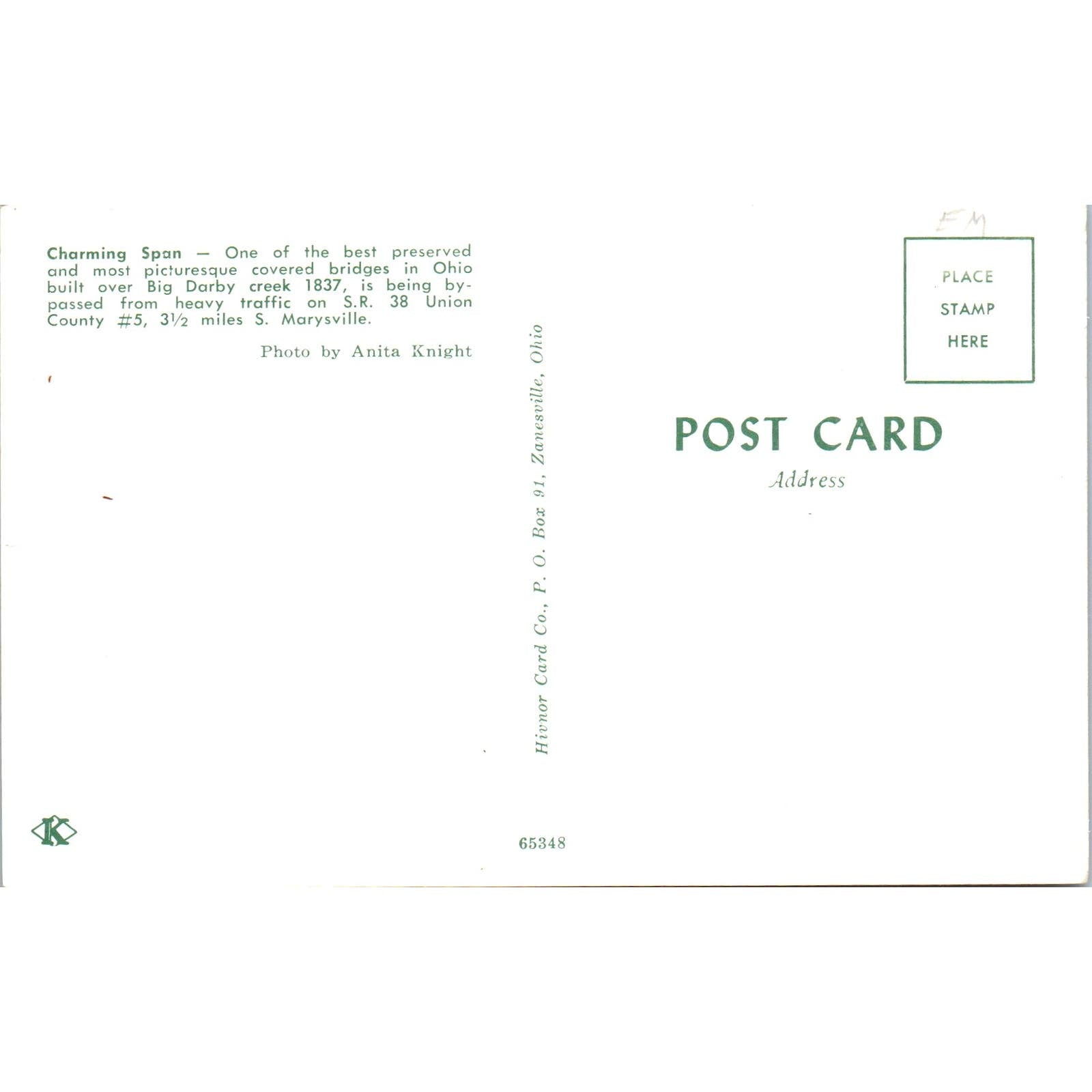 Big Darby Creek Union County Marysville Ohio Covered Bridge Postcard PC2
