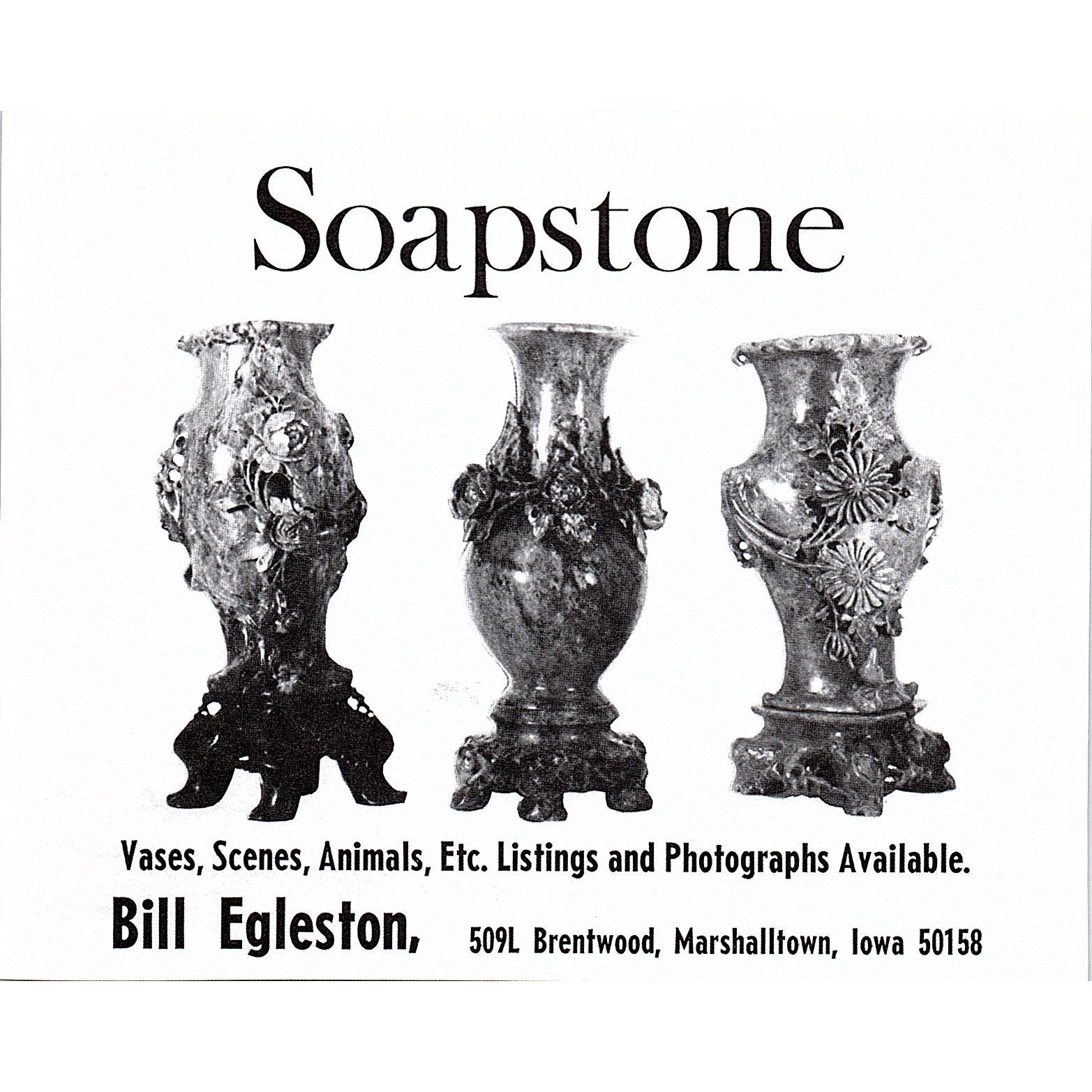 Bill Egleston Soapstone Marshalltown Iowa 1972 Ad AF8-H2