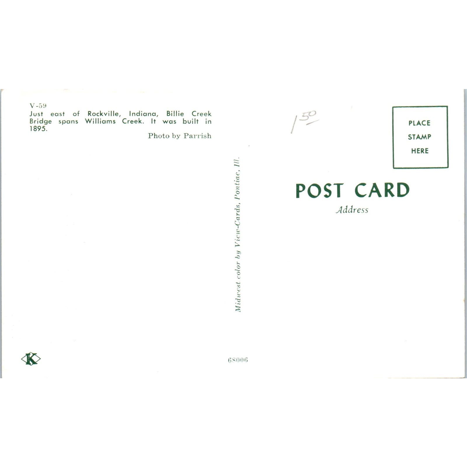 Billie Creek Bridge Williams Creek Rockville Indiana Covered Bridge Postcard PC8