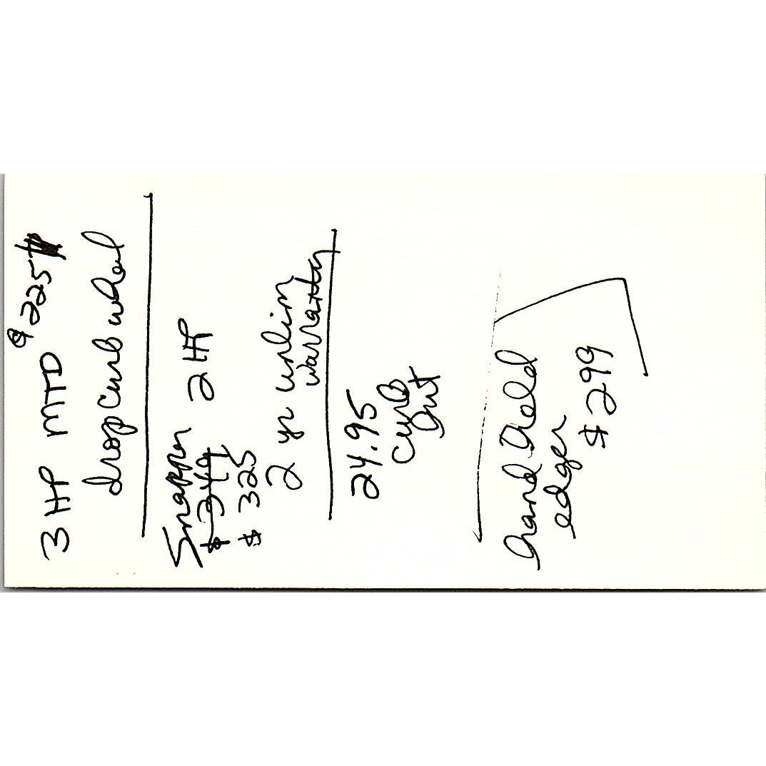 Bill's Lawn Equipment Almack & Karen Lee Vanorden Houston Vintage Business Card SD9-B14