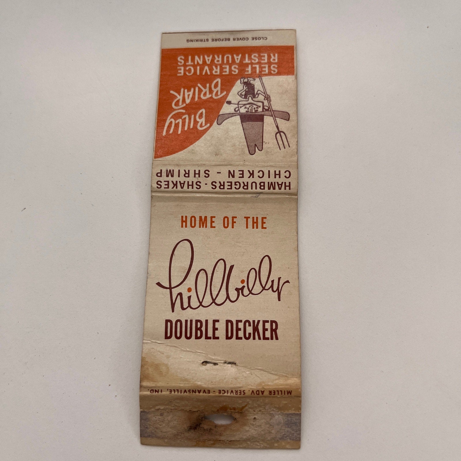 Billy Briar Self Service Restaurants Hillbilly Double Decker Indiana Vintage Matchbook TB6-MB2-15