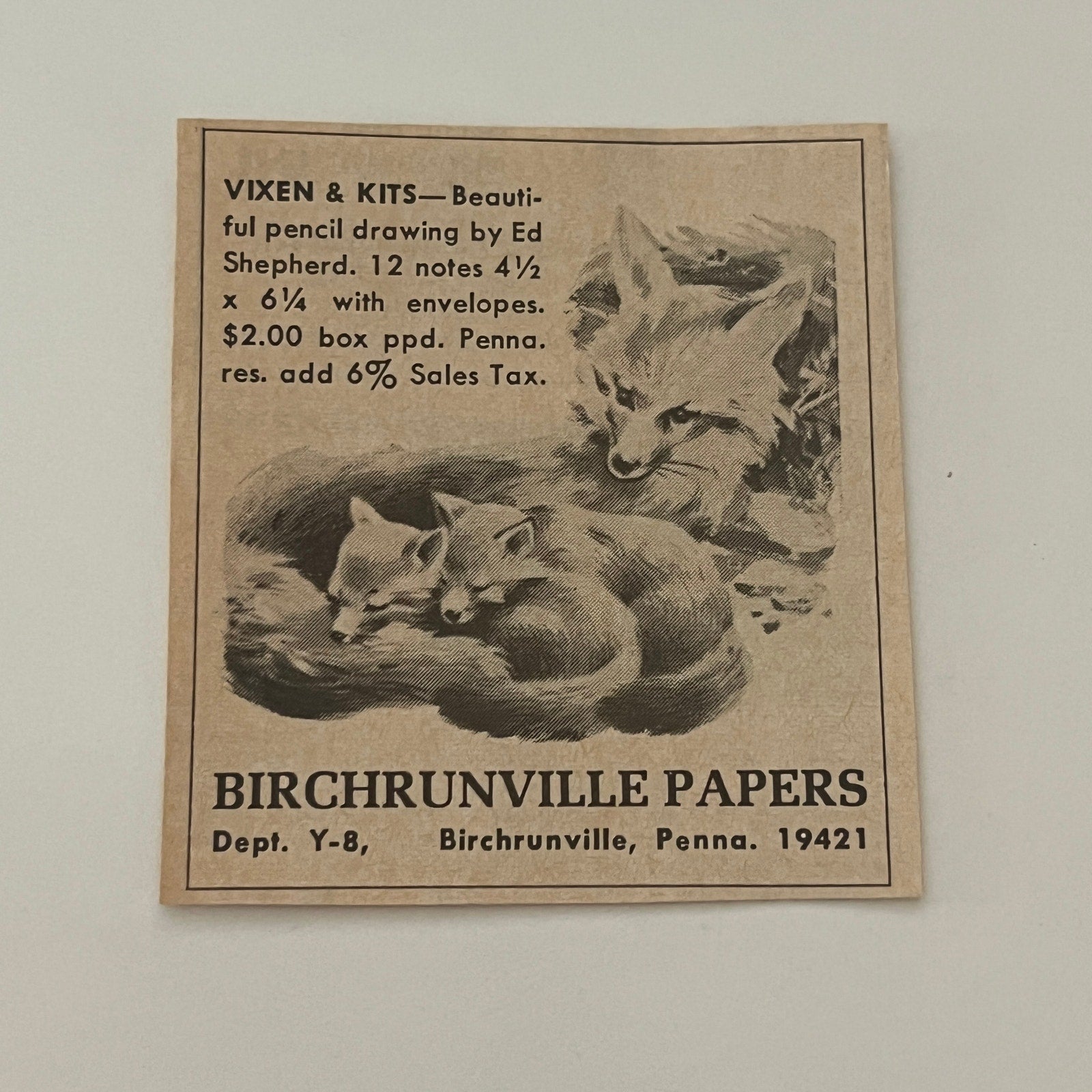 Birchrunville Papers Fox Vixen & Kits Birchrunville PA 1971 Magazine Ad SAG4-S15