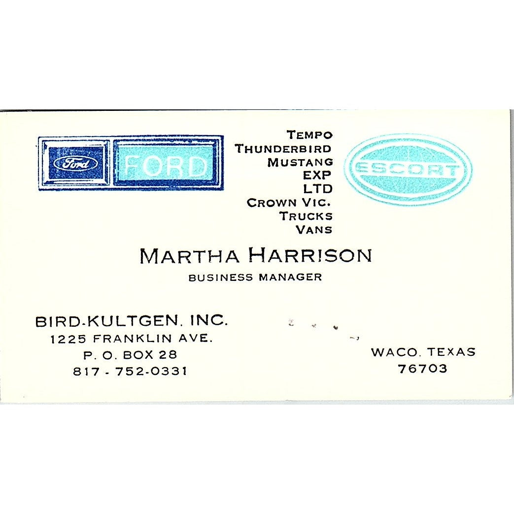 Bird Kultgen Inc. Martha Harrison Tempo Waco Texas Vintage Business Card SF3-B2