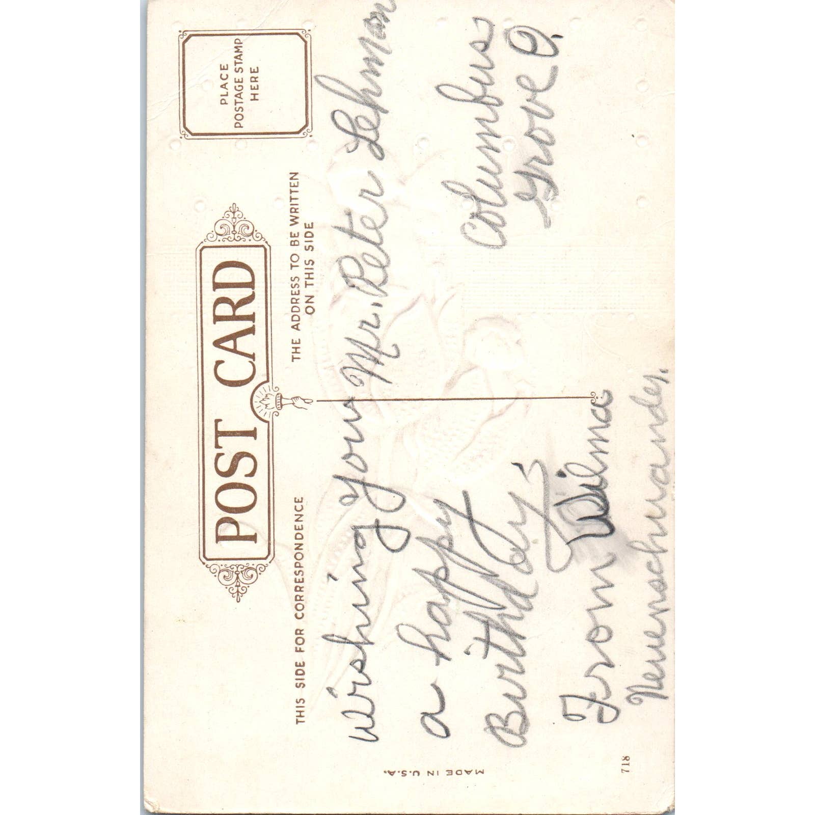 Birthday Fairies Face in Flower Tulips Embossed c1920 Original Postcard TK1-27-3