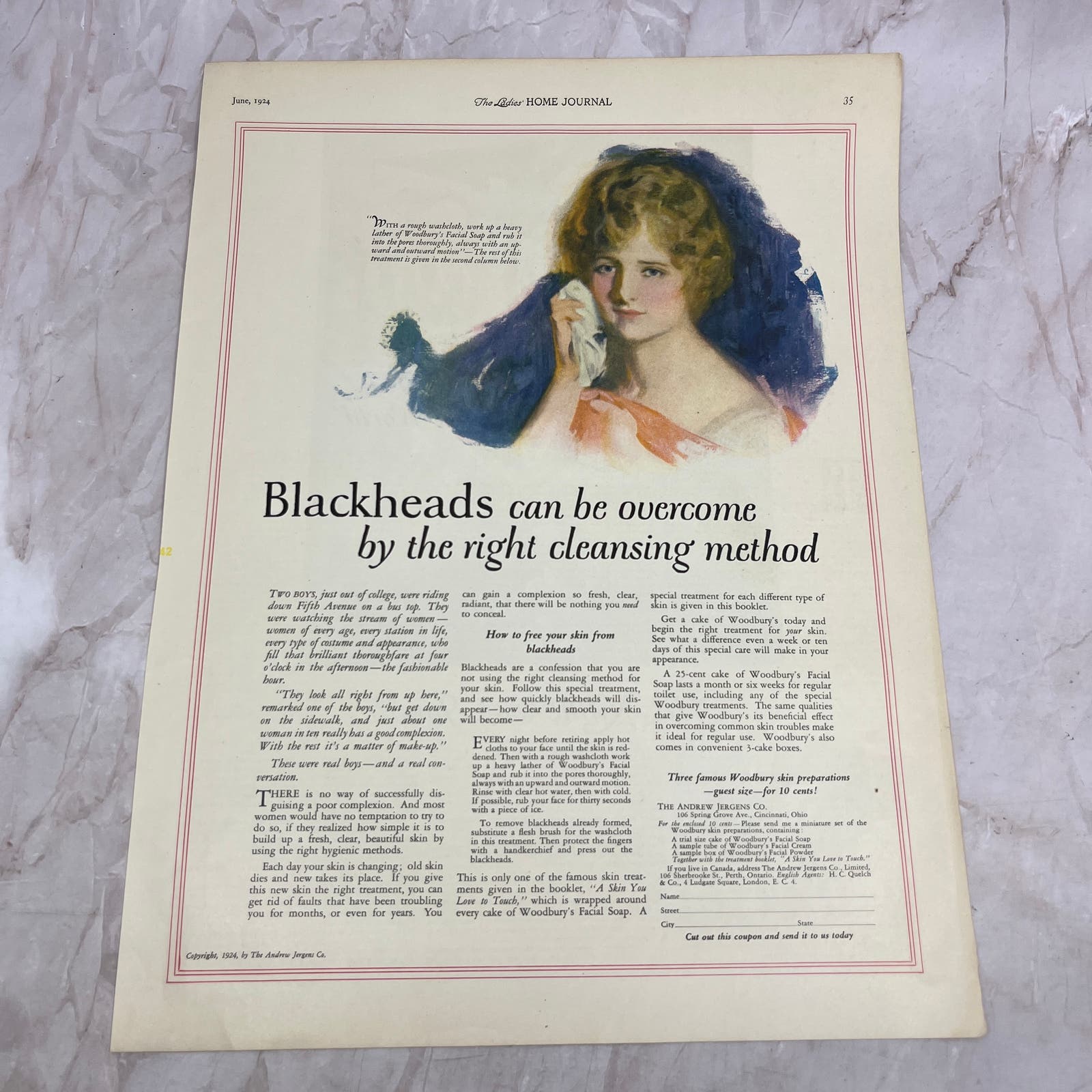 Blackheads Skin Care Woodbury Skin Preparations Andrew Jergens Co Cincinnati OH 1924 Magazine Ad FL6-11