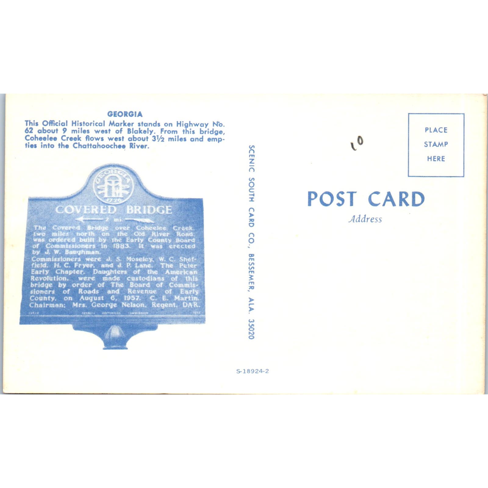 Blakely Coheelee Creek Chattahoochee Georgia Vintage Covered Bridge Postcard PC12