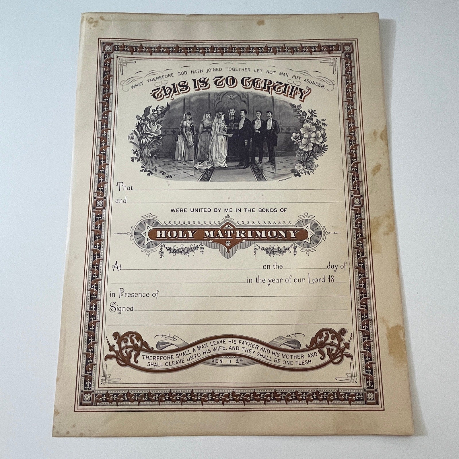 Blank Marriage Certificate Genesis 11:24 1892 Bible Engraving V1-6