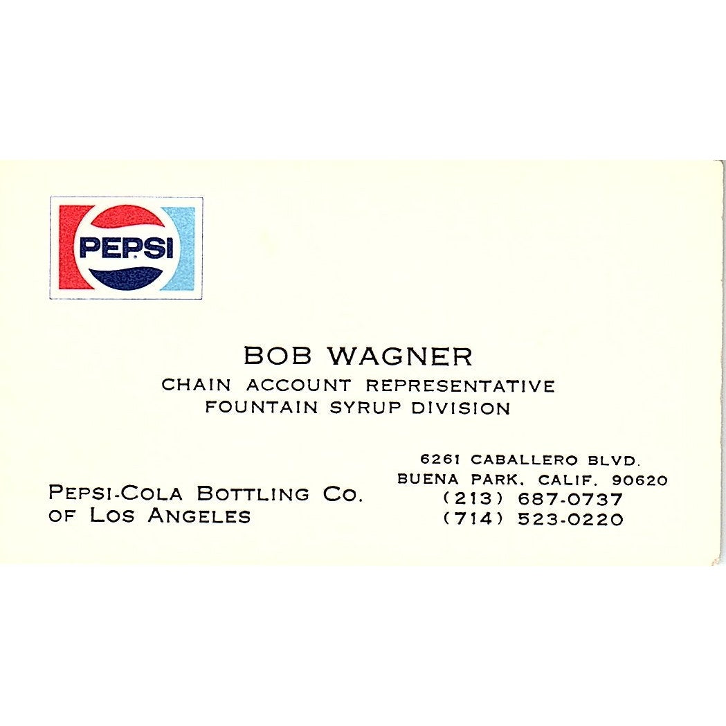 Bob Wagner Pepsi Cola Bottling Co Buena Park CA Vintage Business Card SD9-B10