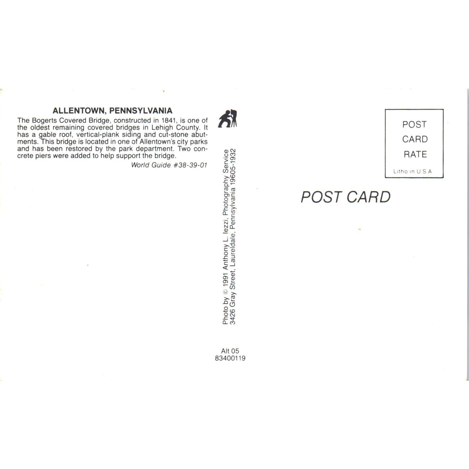 Bogerts Bridge Allentown Pennsylvania Covered Bridge Postcard PB12