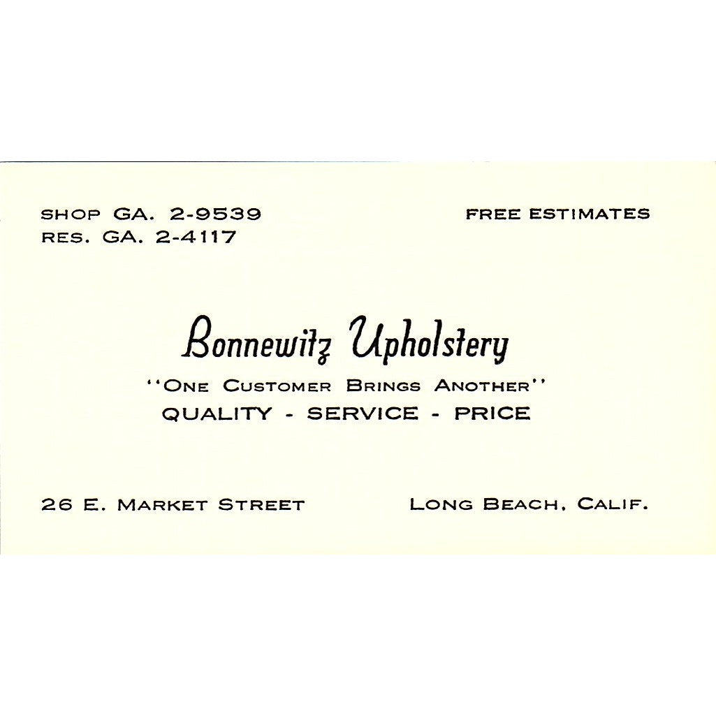 Bonnewitz Upholstery Long Beach CA Vintage Business Card SF3-B6