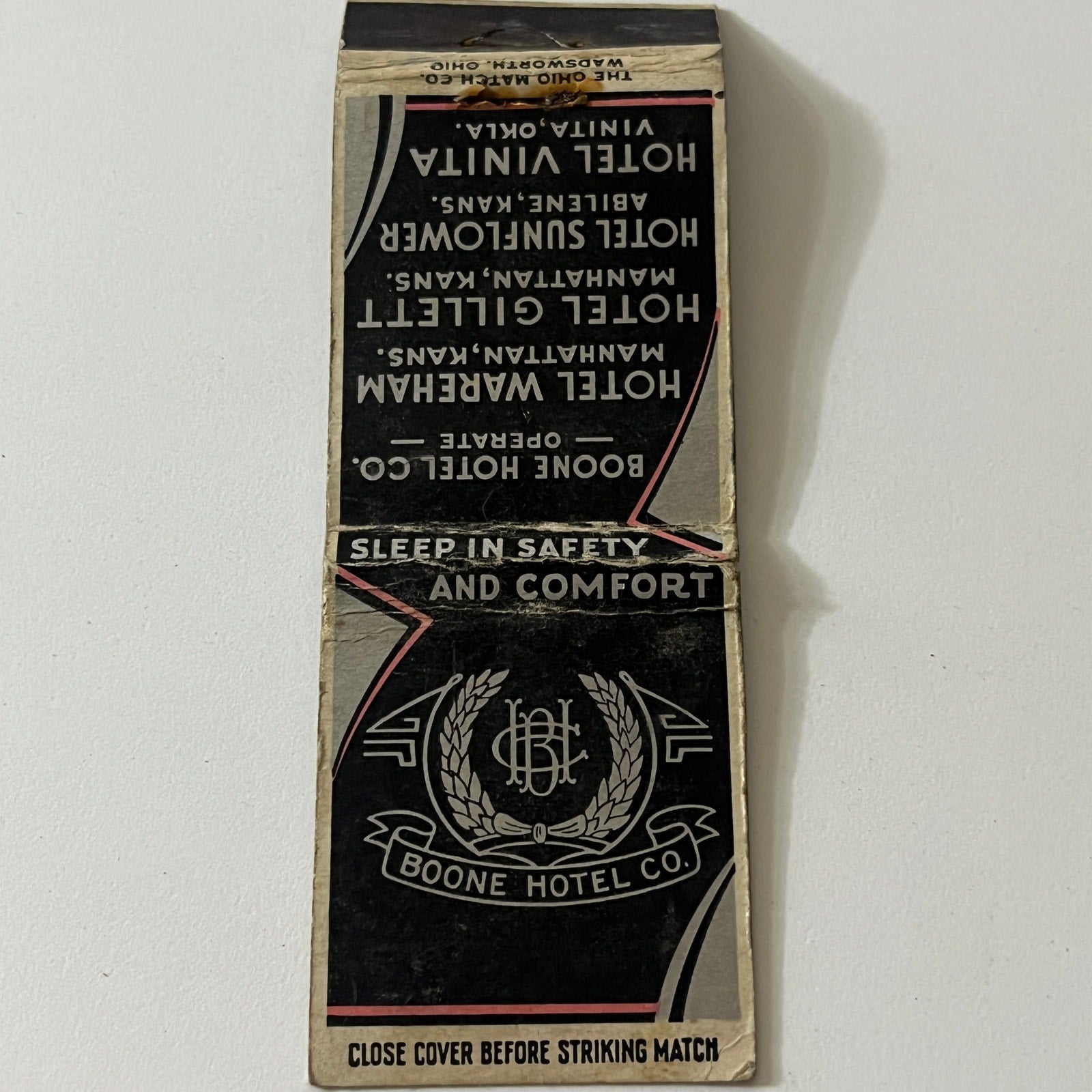 Boone Hotel Co Hotel Wareham Manhattan KS Vintage Matchbook TB6-MB2-11